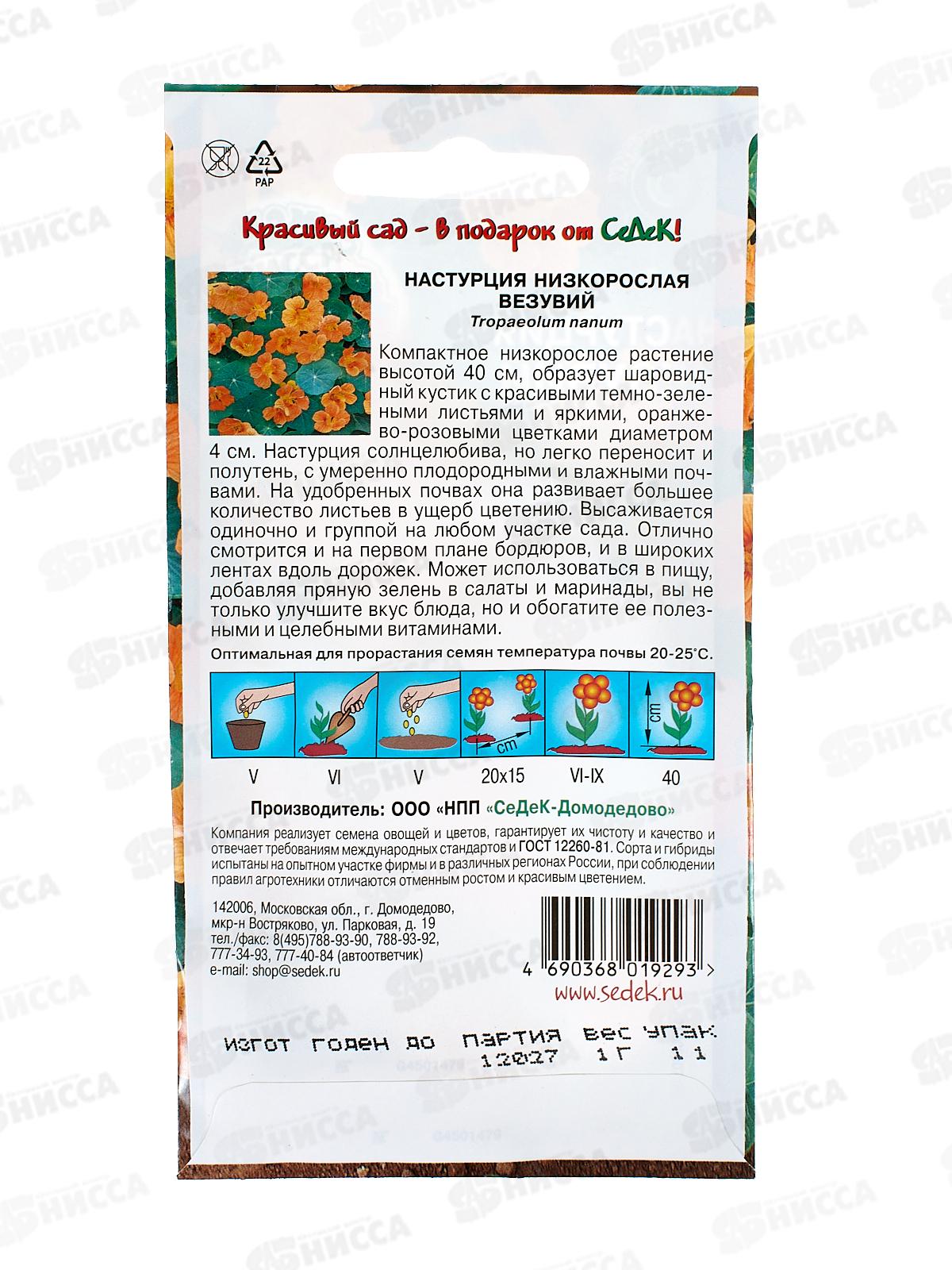 Настурция низкорослая Везувий (оранжево-розовая) (Евро, 1 ) СеДек +