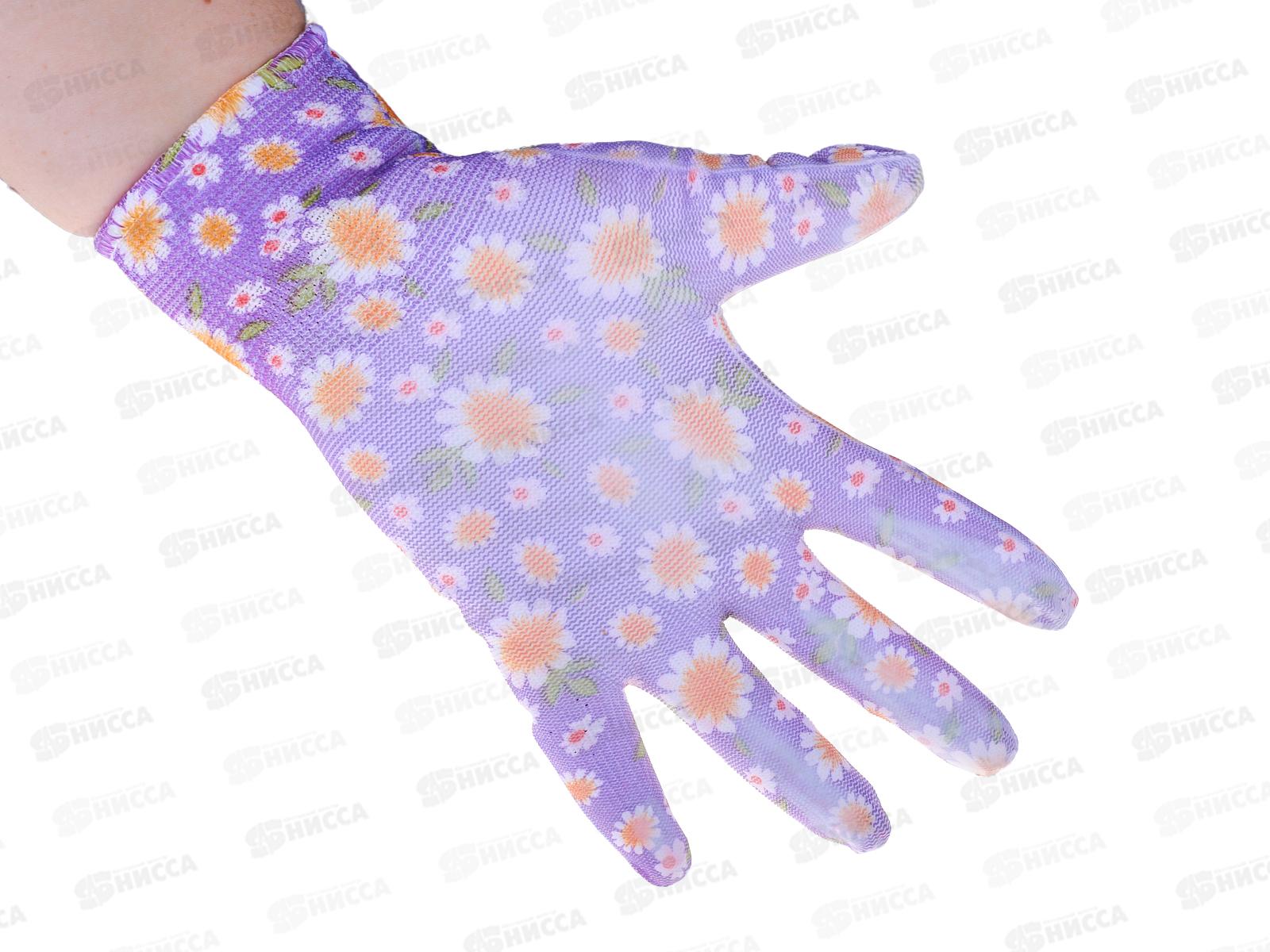 Перчатки нейлоновые №10 цветы с облитием №30 *12/1200