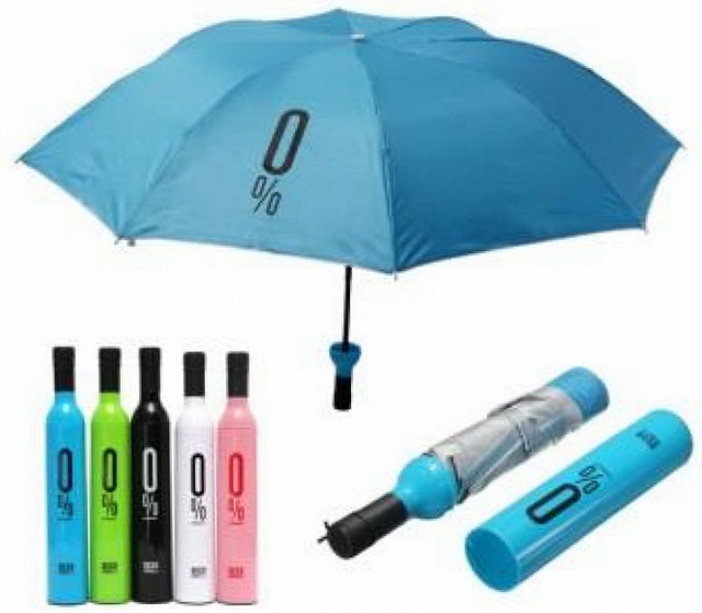 Необычная упаковка - изюминка этой модели. Аккуратный зонтик прячется в пластиковый кофр, выполненный в виде бутылки. Такой футляр защитит вашу сумку от промокания, а ткань зонта от повреждения.
