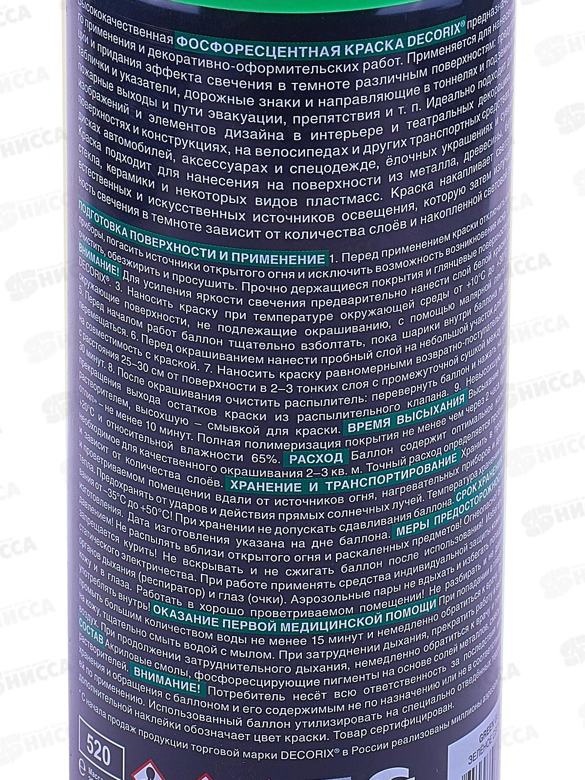 Аэрозольная эмаль фосфоресцентная DECORIX, 520мл, зелёное свечение *12