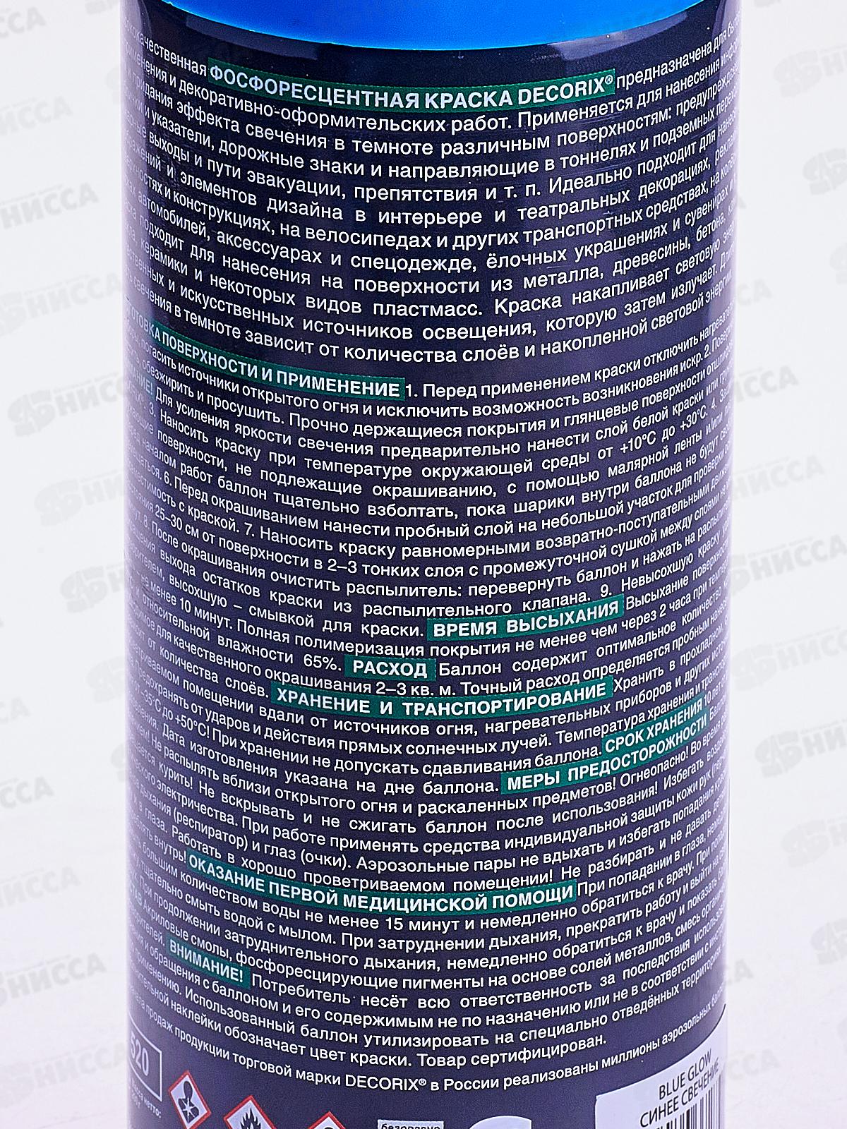Аэрозольная эмаль фосфоресцентная DECORIX, 520мл, синее свечение *12