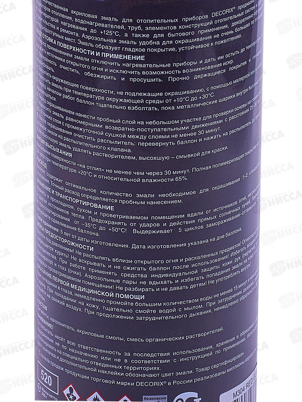 Высококачественная акриловая эмаль для отопительных приборов DECORIX предназначена для окрашивания радиаторов отопления, водонагревателей, труб, элементов конструкций отопительных систем и других поверхностей с температурой нагревания до +125°С, а также для бытового применения, декоративно-оформительских работ, строительства и ремонта. Аэрозольная эмаль удобна для окрашивания не очень больших по площади поверхностей и труднодоступных мест. Эмаль образует гладкое покрытие, устойчивое к пожелтению.