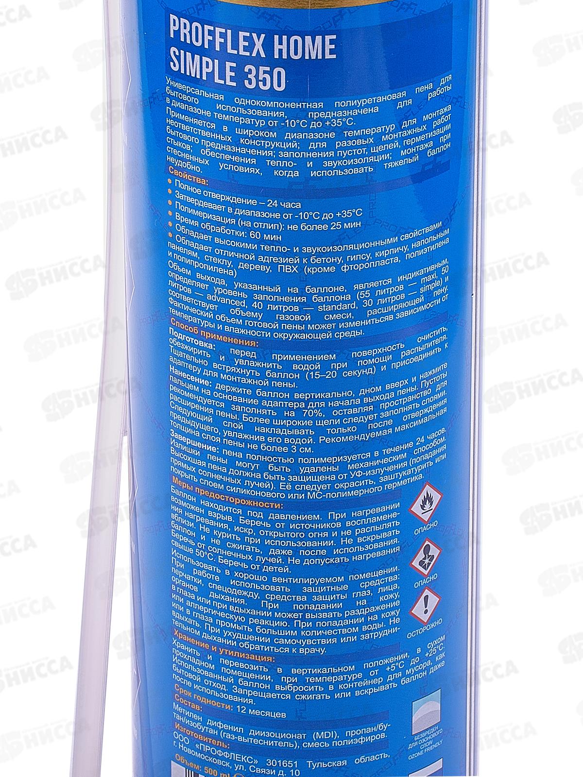 Пена монтажная Profflex HOME 350 Simple всесезонная, до 30л, 500мл *12