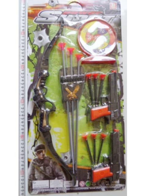 Комплектация: лук, 2 пистолета, мишень, стрелы и пули на присосках
