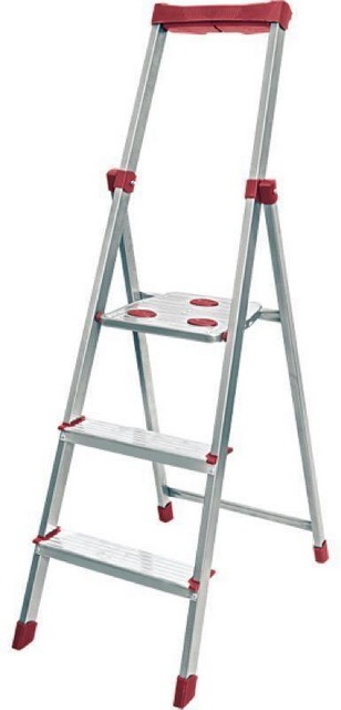 Стремянка металлическая, с усиленной конструкцией для строительно - монтажных работ. Материал: алюминий (ступени), сталь (профиль). Высокая удобная дуга безопасности со встроенным лотком для инвентаря и инструментов с крючком для ведра. Имеется 3 ступени увеличенной ширины и рифленая поверхность, а так же безопасная рифленая платформа, предотвращают скольжение, придавая устойчивость. Имеются профилированные, нескользящие, щадящие пол наконечники опор. Максимальная нагрузка до 150 кг.