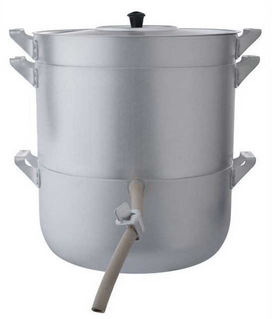 Соковарка объемом 6 л – модель российского производства, выполненная по современным технологиям из качественного и долговечного сырья. Главный материал – алюминий. Сплав устойчив к износу, полностью безопасен, не выделяет вредных веществ. Его можно мыть с применением стандартной химии, либо в посудомоечной машине. Отличительной чертой литого алюминия является прочность при минимальном весе. Учитывая внушительные габариты посуды, этот показатель очень важен. Её удобно хранить и вымывать после использования. Дополнительным обязательным компонентом являются прочные ручки и крышка с уплотнителем. В ней содержится клапан для выхода пара. Принципы работы: устройство соковарки традиционно для данного типа посуды, в нижний ярус заливается вода, после чего доводится до кипения на медленном огне, в верхний отсек засыпаются фрукты и ягоды, из которых и будет выделяться жидкость под воздействием термообработки; средняя ёмкость предназначена для сбора сока, содержит сливной патрубок для быстрого выведения готового продукта и переливания в заранее подготовленную тару.