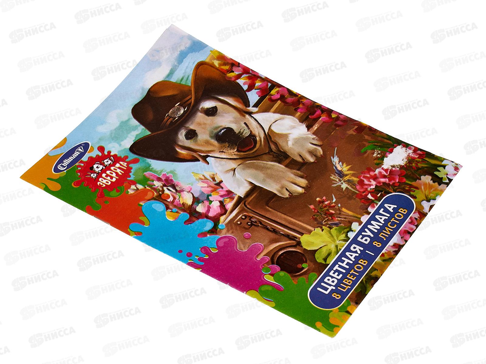 Цветная бумага 8листов 8цветов ГУЛИНАН А4 Зверята, 6408 Z*50