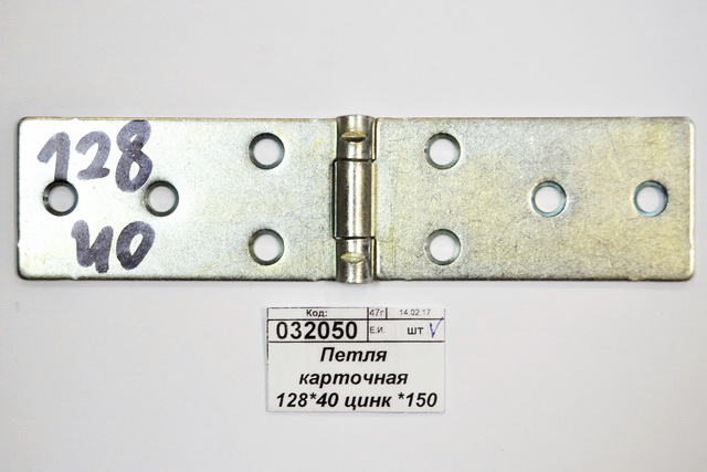 Петля карточная 128х40 мм, покрытие цинк, Металлист необходима для фиксации дверей с распашным механизмом к мебельному корпусу и для их открывания. Их используют в производстве мебели, для различных технологических лючков. Карточные накладные петли используются на любых типах межкомнатных дверей, но главным образом применяются для дверей без притвора.