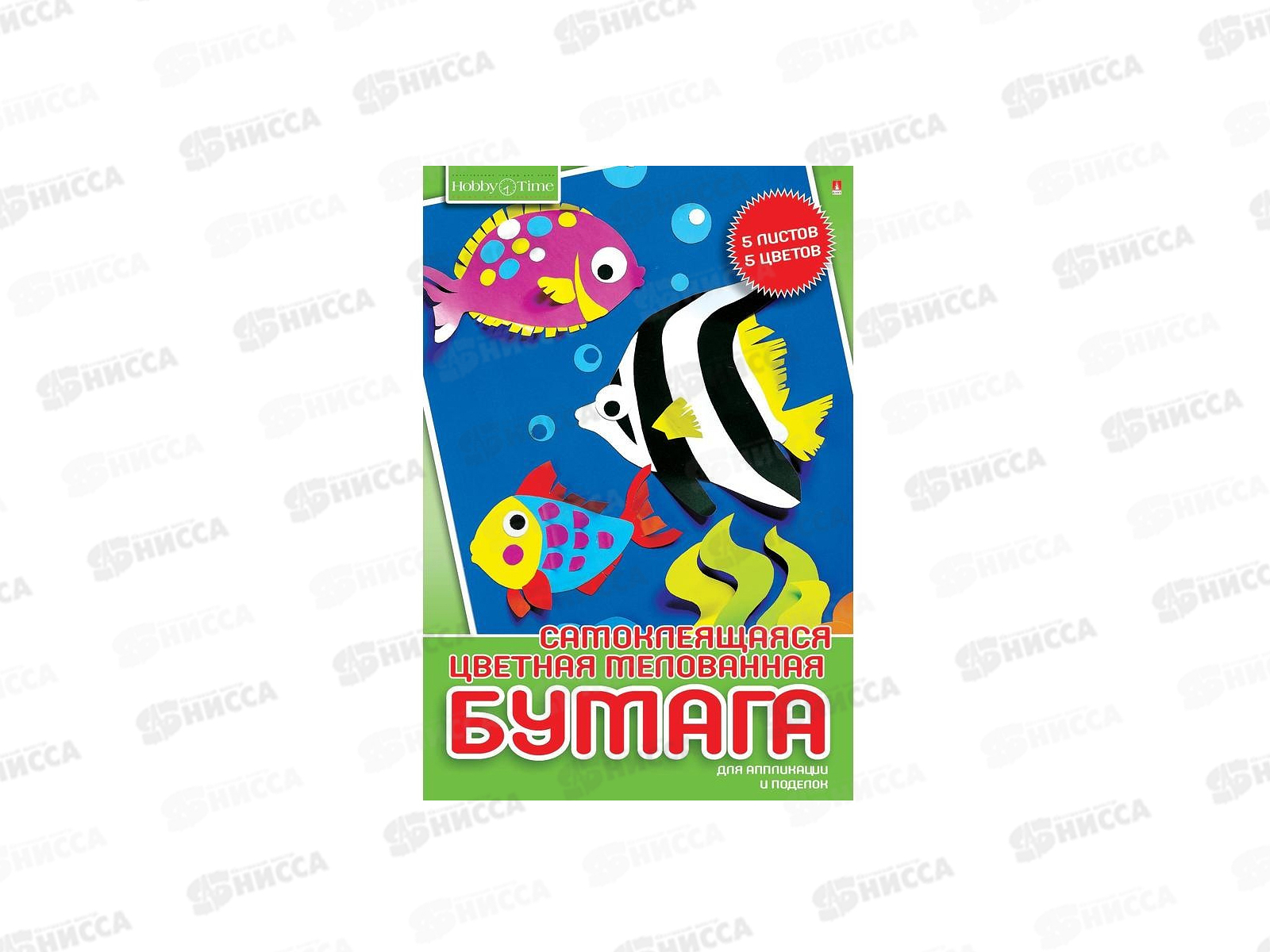 Цветная бумага 5листов 5цветов АЛЬТ Хобби тайм,самоклеящаяся 11-405-244*70