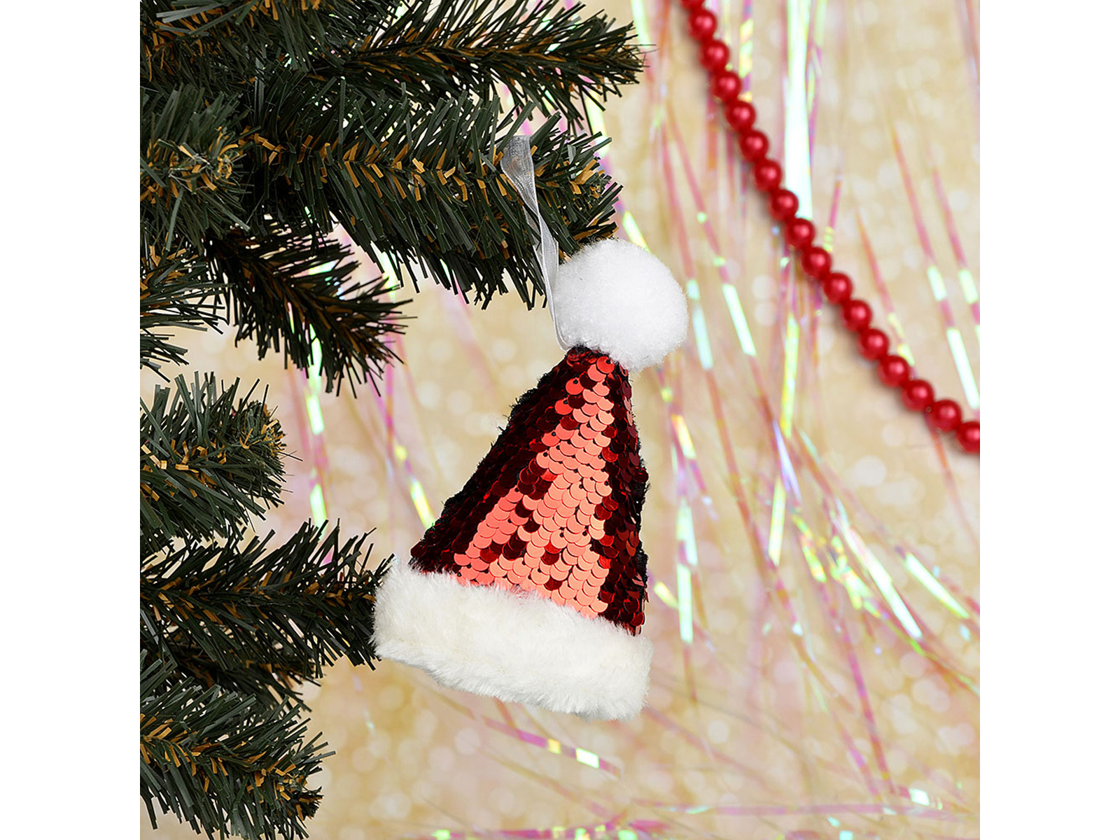 Подвеска "Шапка" 11см пайетки красный/золото 397-228 г