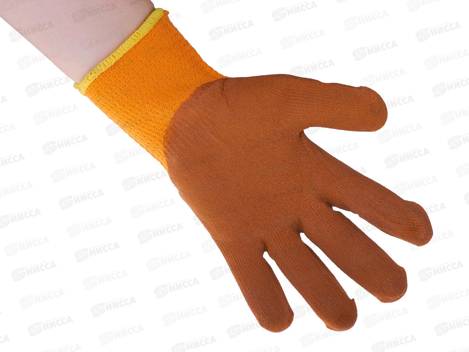 Перчатки хлопчатобумажные облитые Зима А-263 утепленные коричневые *12/480