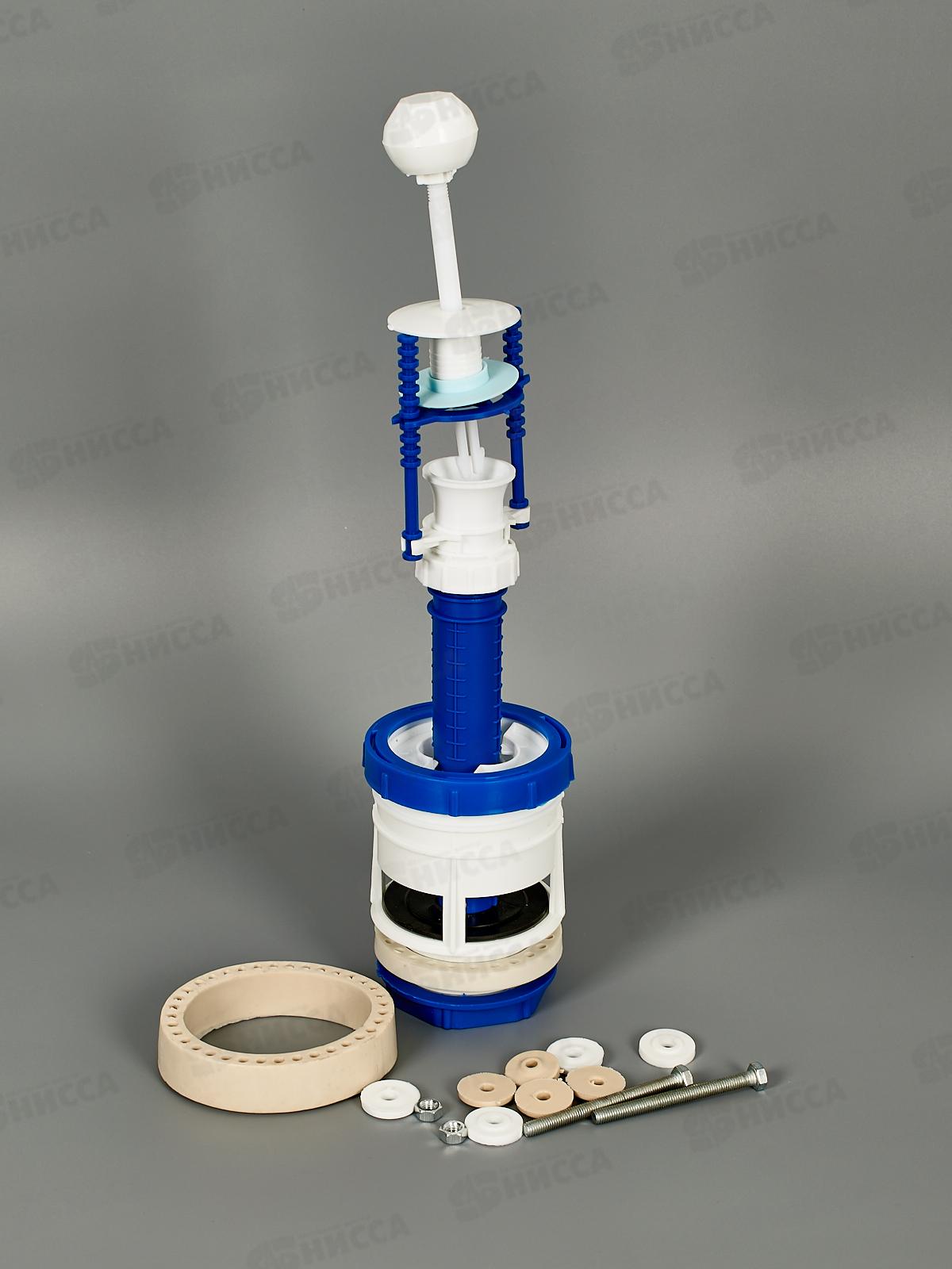 Арматура спускная КВ-5.1 штоковая. Арматура является универсальной: может устанавливаться и в «низкие» бачки (высота до крышки бачка 270-280 мм), «средние» (высота до крышки бачка до 390 мм), «высокие» (высота до крышки бачка 425 мм), а конструкция втулки позволяет использовать ее как с узким отверстием крышки бачка (24 мм), так и с широким (40 мм). Достоинством данной арматуры, по сравнению с арматурами других производителей, нужно отметить ее конструктивные особенности, обеспечивающие устойчивость к продольному перекосу, это позволяет устанавливать ее в бачки с несовпадением по вертикали отверстия в крышке бачка и смывного отверстия (смывные бачки 2го и 3го сорта). Плоский донный клапан обеспечивает плотное запирание смывного отверстия, исключая просачивание воды в унитаз. Система поплавков обеспечивает фиксированный полный смыв. Конструкция колонки обеспечивает простоту крепления её в бачке, а также установку трубки перелива в нужном положении по высоте. Наличие переливного устройства исключает нежелательный пролив воды из бачка.
