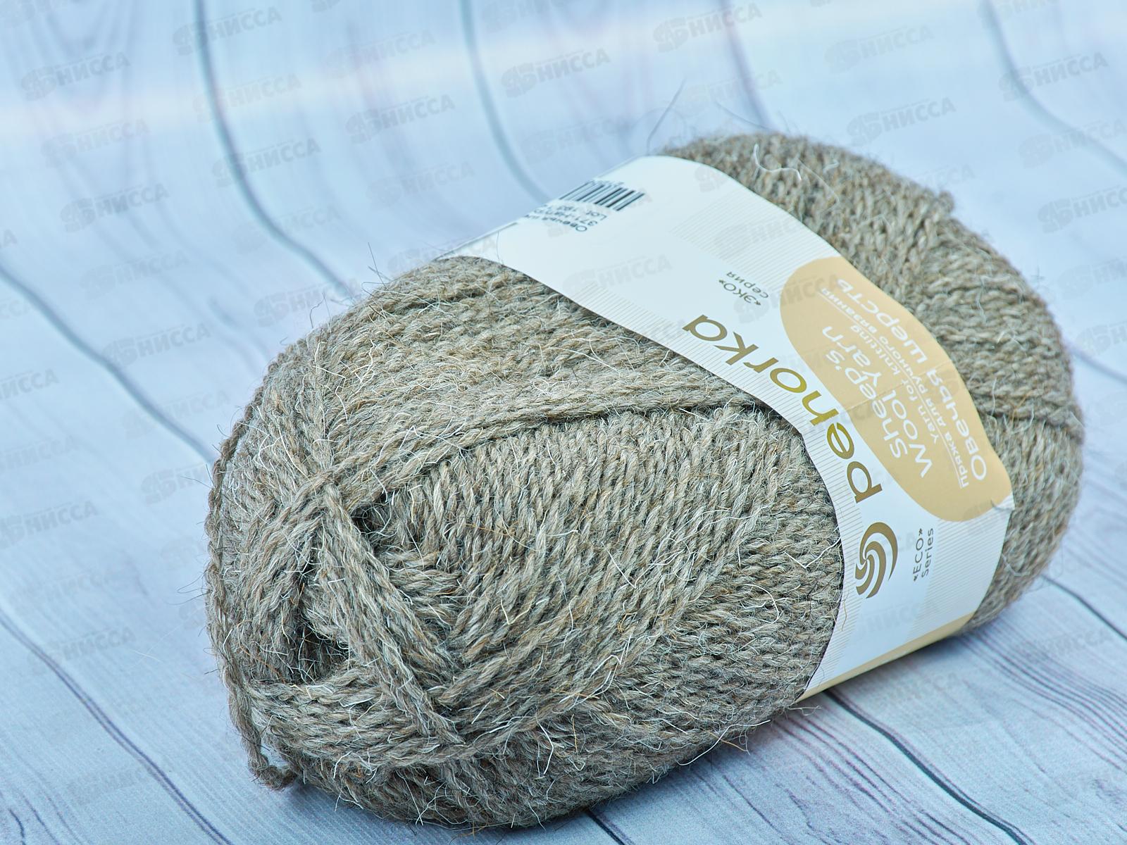 Пряжа Овечья шерсть100% 100гр 200м 371 Натурально серый