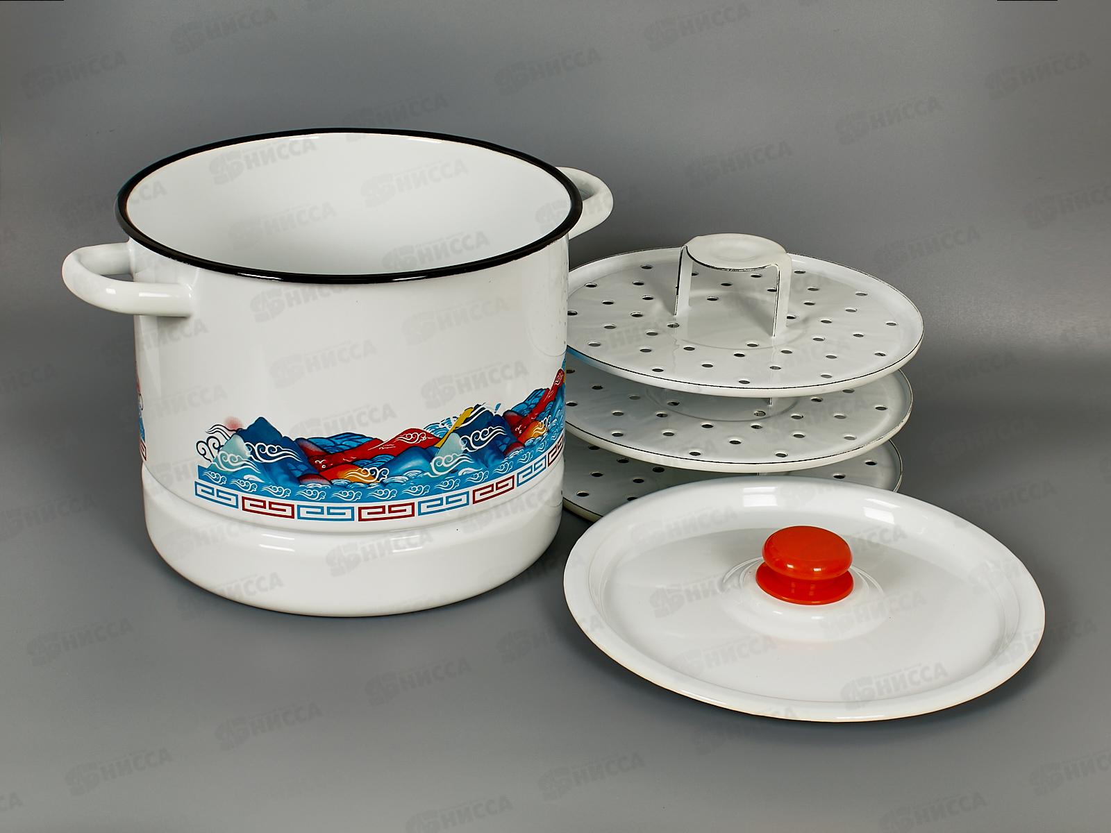 Мантоварка 9,0л декорированная с пластмассовой кнопкой 3 вставки С1722.3 *2
