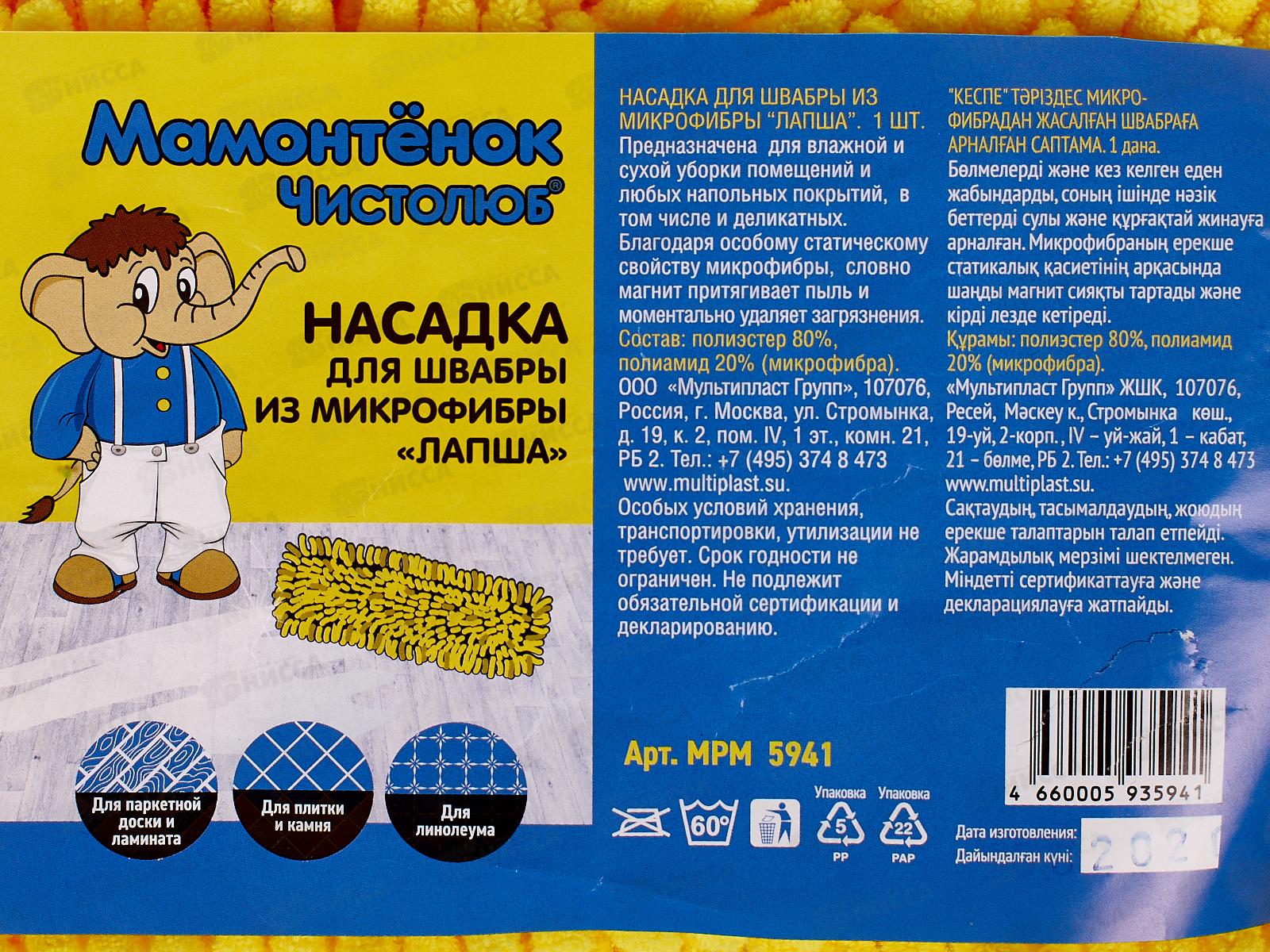 Насадка для швабры 2-сторонняя микрофибра+лапша KD-17 *50