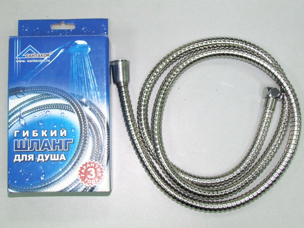 Шланг для душа от бренда Сантаком, 150 см. Душевой шланг соединяет между собой насадку с корпусом оборудования и используется для подачи жидкости. Он гибкий, длинный, может свободно перемещаться в пределах ванны.