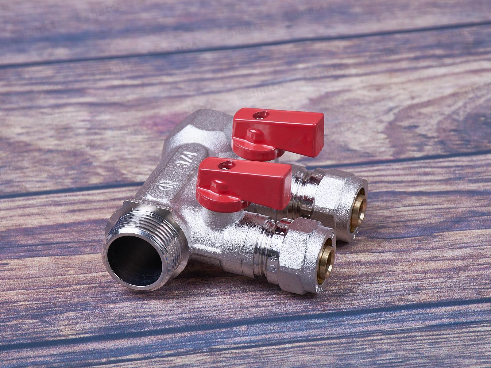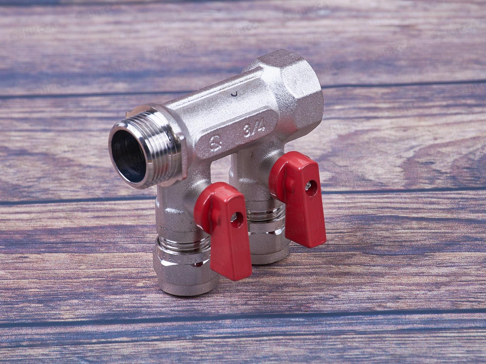 Коллектор Aqualink 03933 2 выхода с шаровыми кранами с внутренней и наружной резьбой 3/4 дюйма 16 мм используется для распределения и регулирования рабочей среды в системах горячего и холодного хозяйственно-питьевого водоснабжения, а также отопления: системы «теплый пол» и радиаторного отопления.