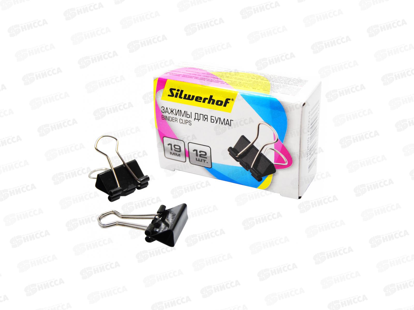 Зажим для бумаг 19мм 12шт SILWERHOF черный, 510014/1162639 *12