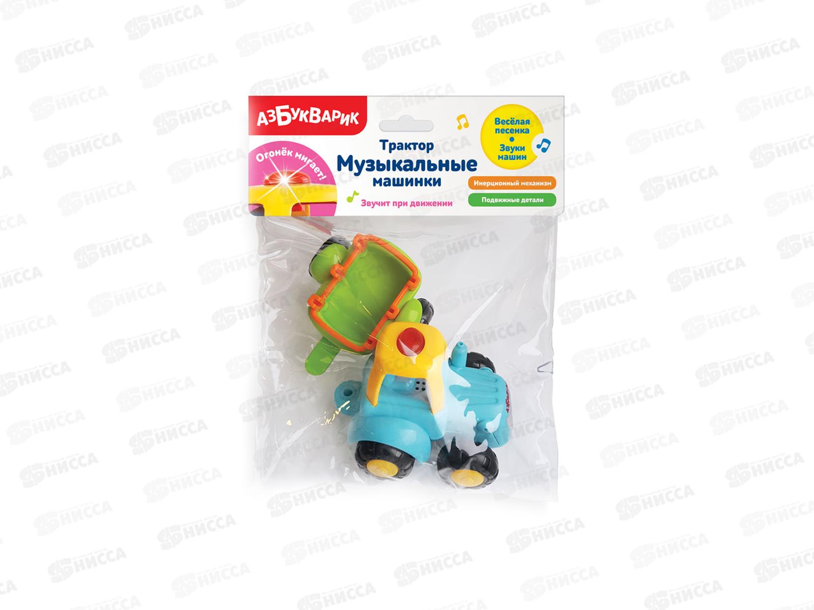 Забавный разноцветный трактор ездит, мигает огоньками, проигрывает веселую песенку и задорно «бибикает». Музыка и световые эффекты включаются при движении, а слова песенки помогут крохе быстро выучить счет до пяти. Поставьте игрушку на пол, включите, и ребенок будет с большим удовольствием ползать за веселой машинкой, которая ездит благодаря работе инерционного механизма. У самосвала есть съемный прицеп – малыш это обязательно оценит! А чтобы играть было еще интереснее – соберите всю серию Музыкальные машинки трактор, бетономешалку, бульдозер и самосвал! С ними в детской можно затеять грандиозную стройку или провести настоящие гонки инерционных машинок. Игрушки выполнены из высококачественного, ударопрочного пластика, сертифицированы.