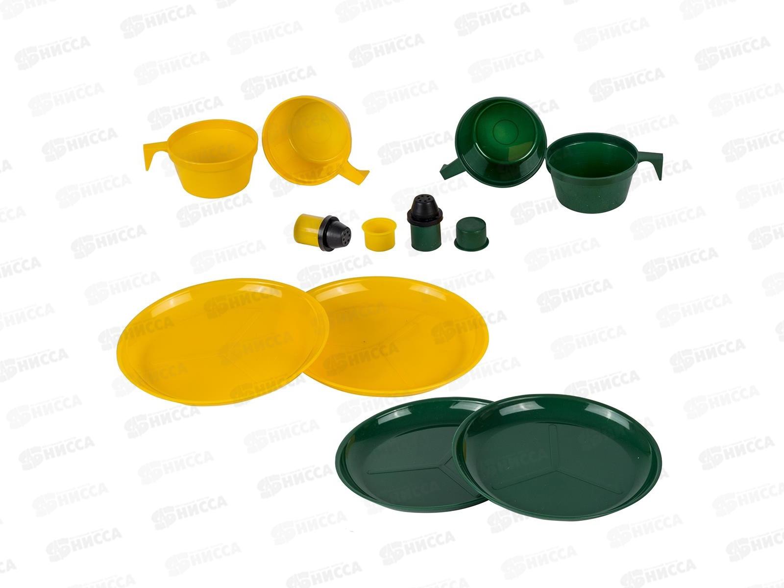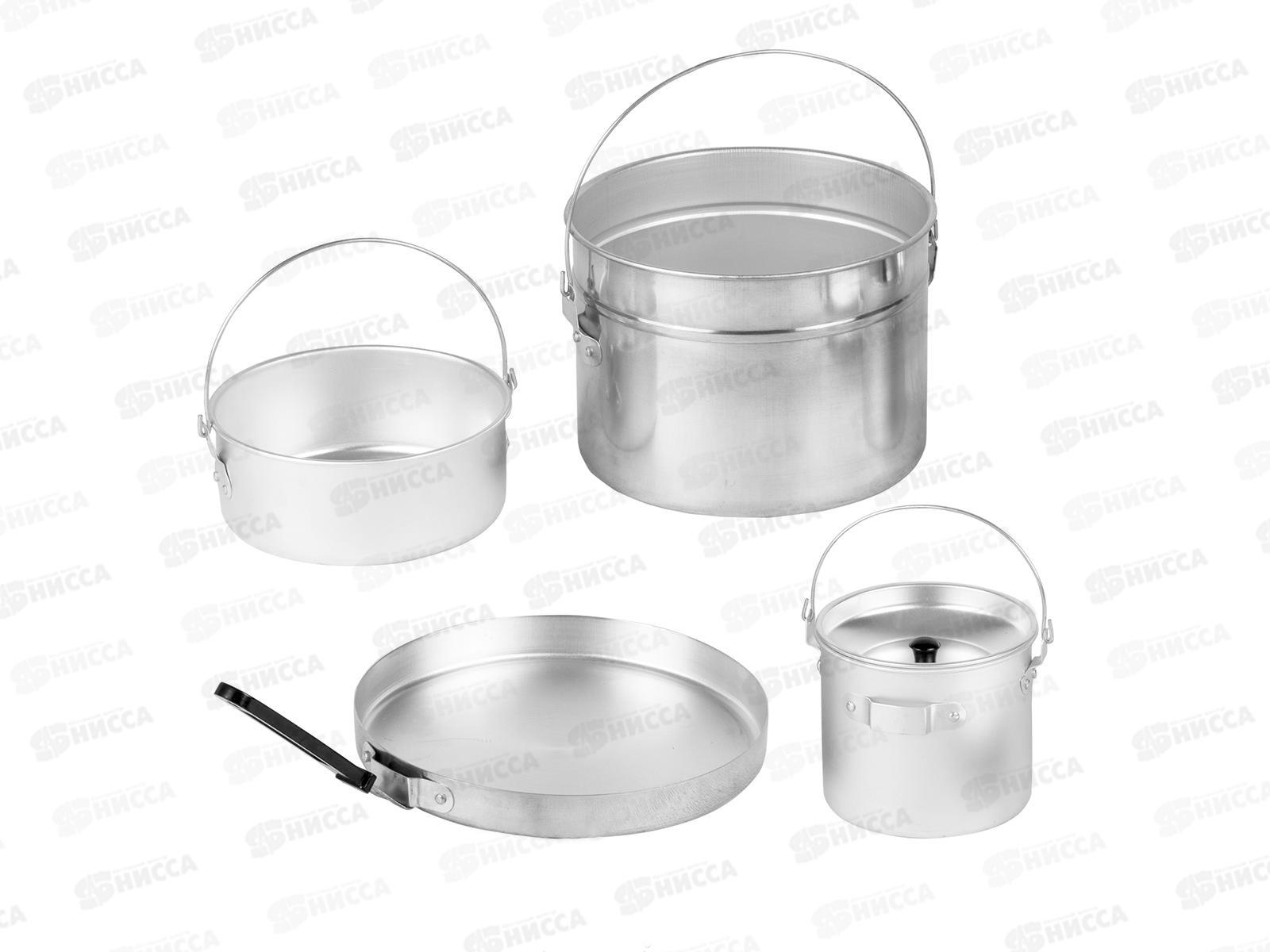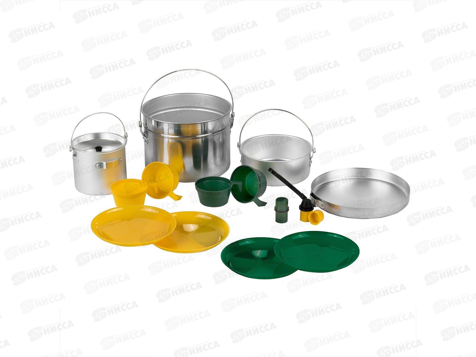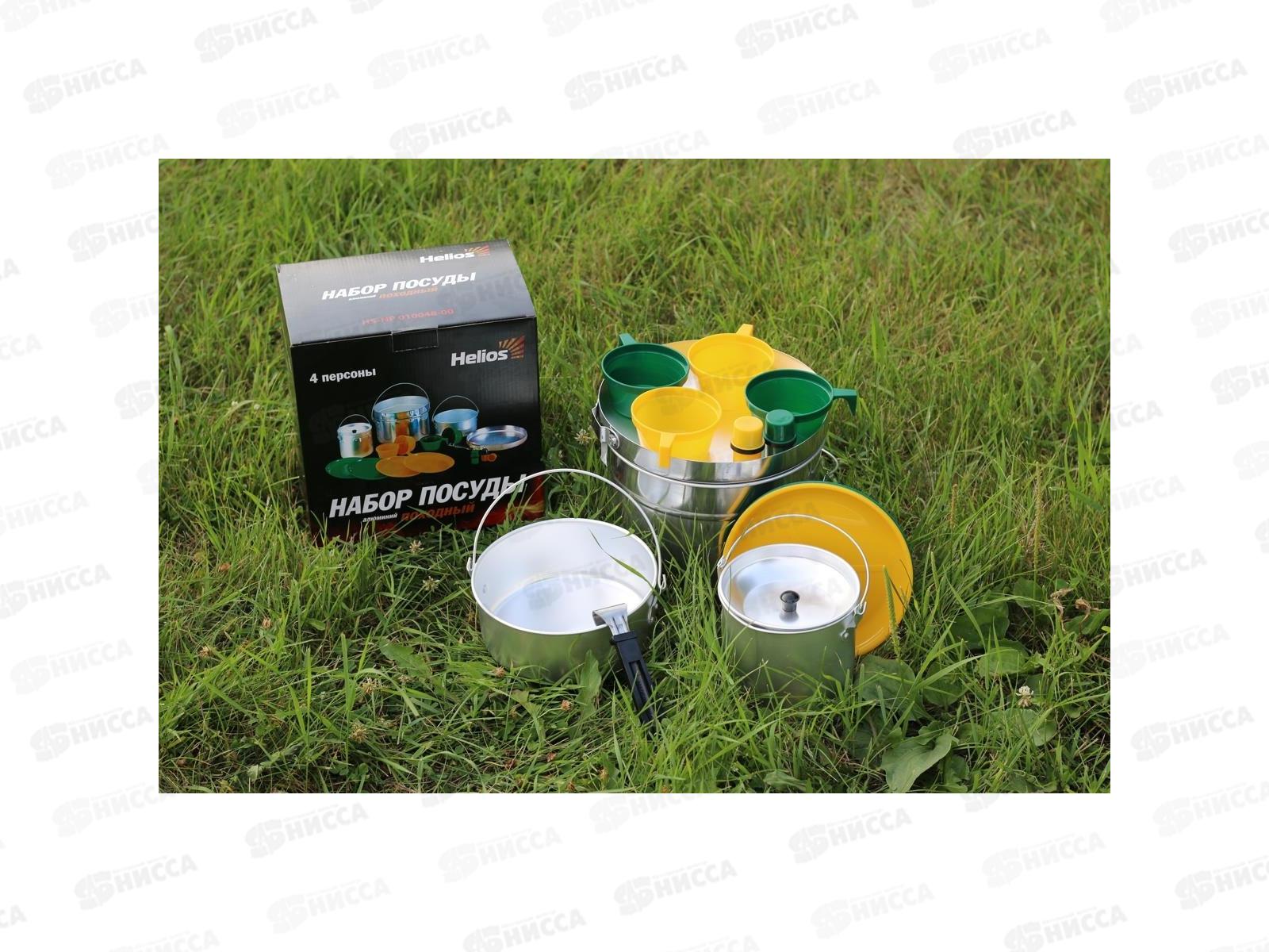 Набор посуды (HS-NP 010048-00) Helios. Компактный и удобный набор для приготовления пищи в походных условиях, рассчитанный на 4 человека. Предметы складываются один в другой и имеют небольшой вес, что очень удобно для транспортировки. Котелки и сковорода изготовлены из высококачественного алюминия, благодаря чему сочетают прочность и легкость. Комплектация: котелок (5,45 л) – 1 шт.; котелок (1,9 л) – 1 шт.; котелок (1,0 л) с крышкой – 1 шт.; сковорода со съемной ручкой – 1 шт.; тарелка – 4 шт.; кружка (240 мл) – 4 шт.; солонка – 1 шт.; перечница – 1 шт. Внимание! Перед первым использованием промыть в чистой воде. Не нагревать без содержимого. После использования промыть и высушить. Хранить в чистом и защищенном от влаги месте.