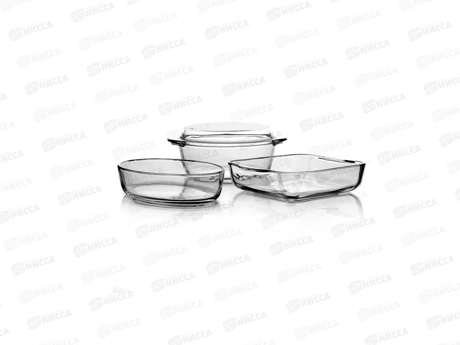 Состав набора: кастрюля с крышкой, объем 2 л, лоток квадратный, объем 2 л, форма овальная, объем 1,5 л