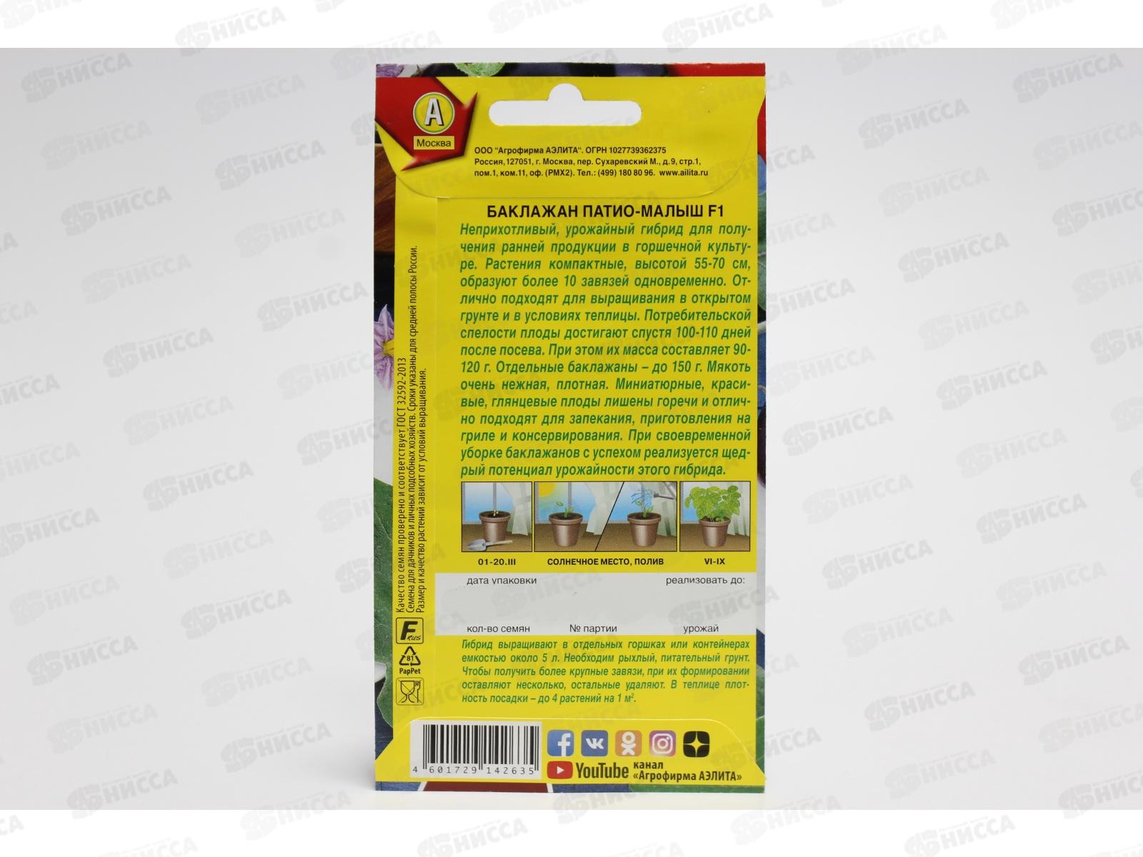 Баклажан Патио-малыш F1 *10 АЭЛИТА срок до 12.24