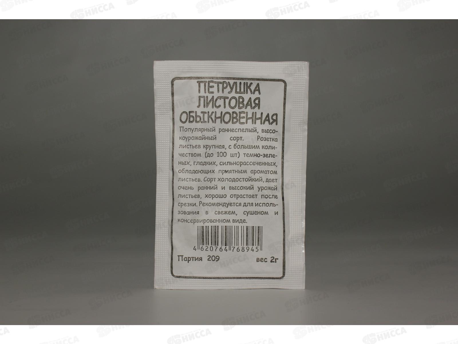 Петрушка листовая ОБЫКНОВЕННАЯ - скороспелый сорт с обилием ароматной, полезной зелени. Ценность сорта: скороспелость, многократность срезки за сезон, быстрое отрастание после срезки, обильная листовая масса, сильная ароматичность. Посев семян проводят в несколько сроков: ранней весной (конец апреля - начало мая), под зиму (октябрь-ноябрь), в середине лета (в конце июня). Подзимний посев проводят сухими семенами. Весной петрушку сеют в увлажнённые бороздки на расстоянии 3-4 см в ряду и 20-30 см между рядами. Посевы сверху мульчируют торфом. Для ускорения прорастания семян посевы накрывают плёнкой, которую убирают при появлении всходов. Уход за петрушкой включает борьбу с сорняками, два прореживания посевов, подкормки после прореживания, которые совмещают с очередным поливом.
