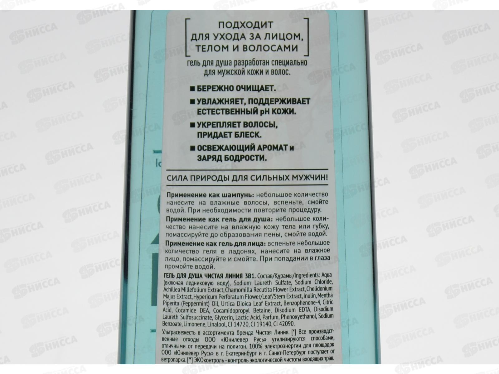 Концерн Калина Чистая Линия гель для душа 400мл 3в1 *6/12
