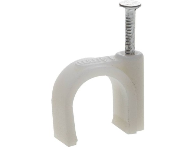 Высококачественный круглый крепеж кабеля представляет собой дугообразную пластиковую скобу с гвоздём. Используется для мгновенного, а главное надёжного крепления проводов и кабелей к поверхностям стен, несущих конструкций и потолков. Гвоздик выполнен из закаленного металла, что позволит надежно забивать его даже в плотные и твердые материалы, не опасаясь сломать или погнуть гвоздь. Скоба предназначена для фиксации круглого кабеля.