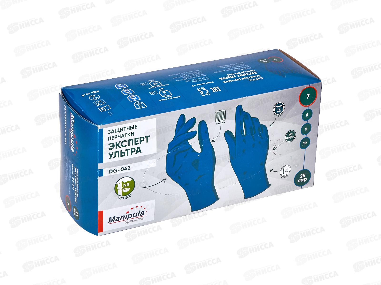 Перчатки ЭКСПЕРТ УЛЬТРА+ S(7),латексные 0,28мм,без пудры *25/250