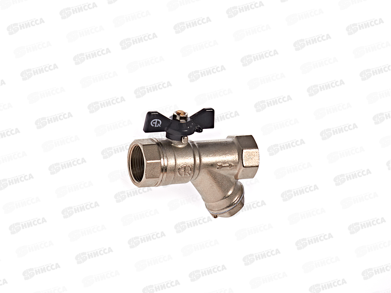 Кран шаровый FF 3/4 Vs В, с косым фильтром гайка-гайка бабочка, Aqualink *5/50