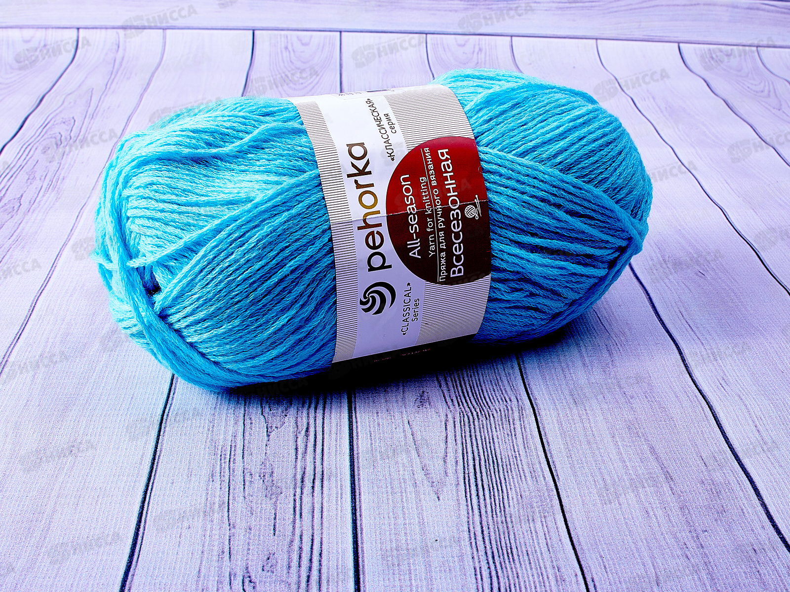 Пряжа Всесезонная 222 голубая бирюза 100г320м шерсть25% хл30% акр45%