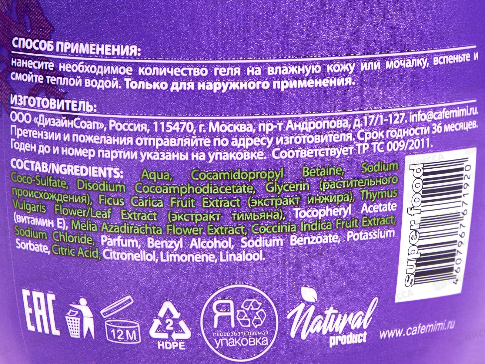 Кафе Мими SF Гель для душа Инжир и Тимьян 370мл 572111 *8
