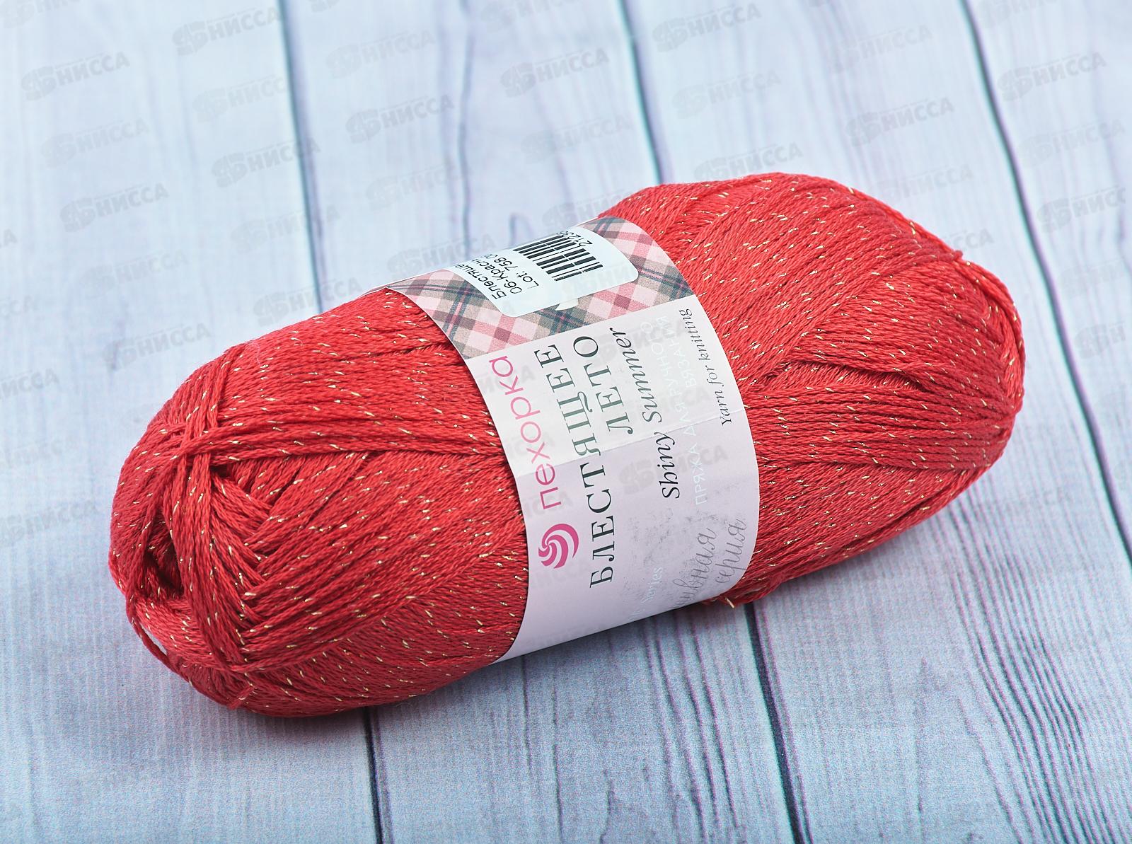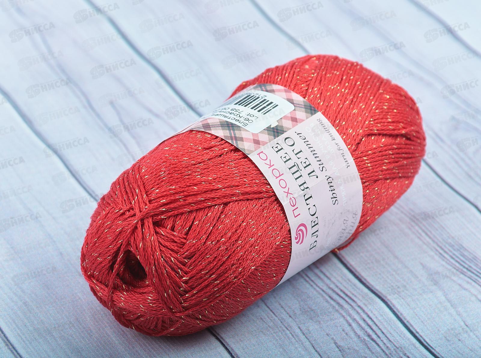 Пряжа Блестящее лето 06 Красный 100г хлопок95% метан5%