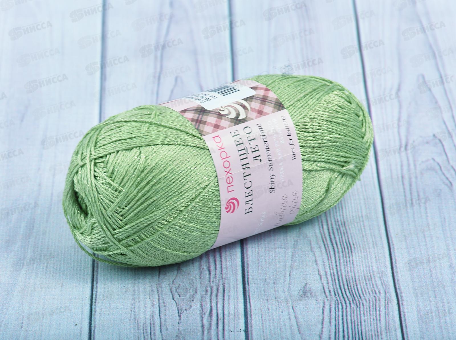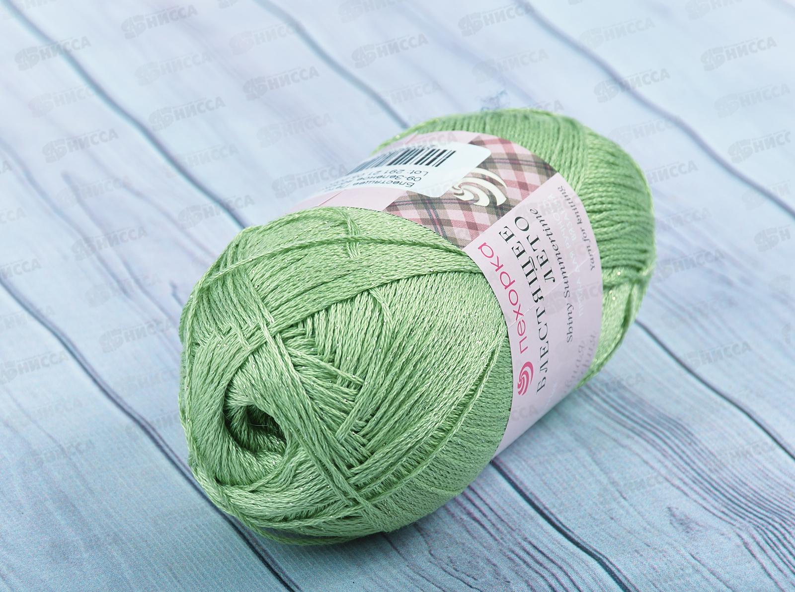 Пряжа Блестящее лето 09 Зеленое яблоко 100г хлопок95% метан5%