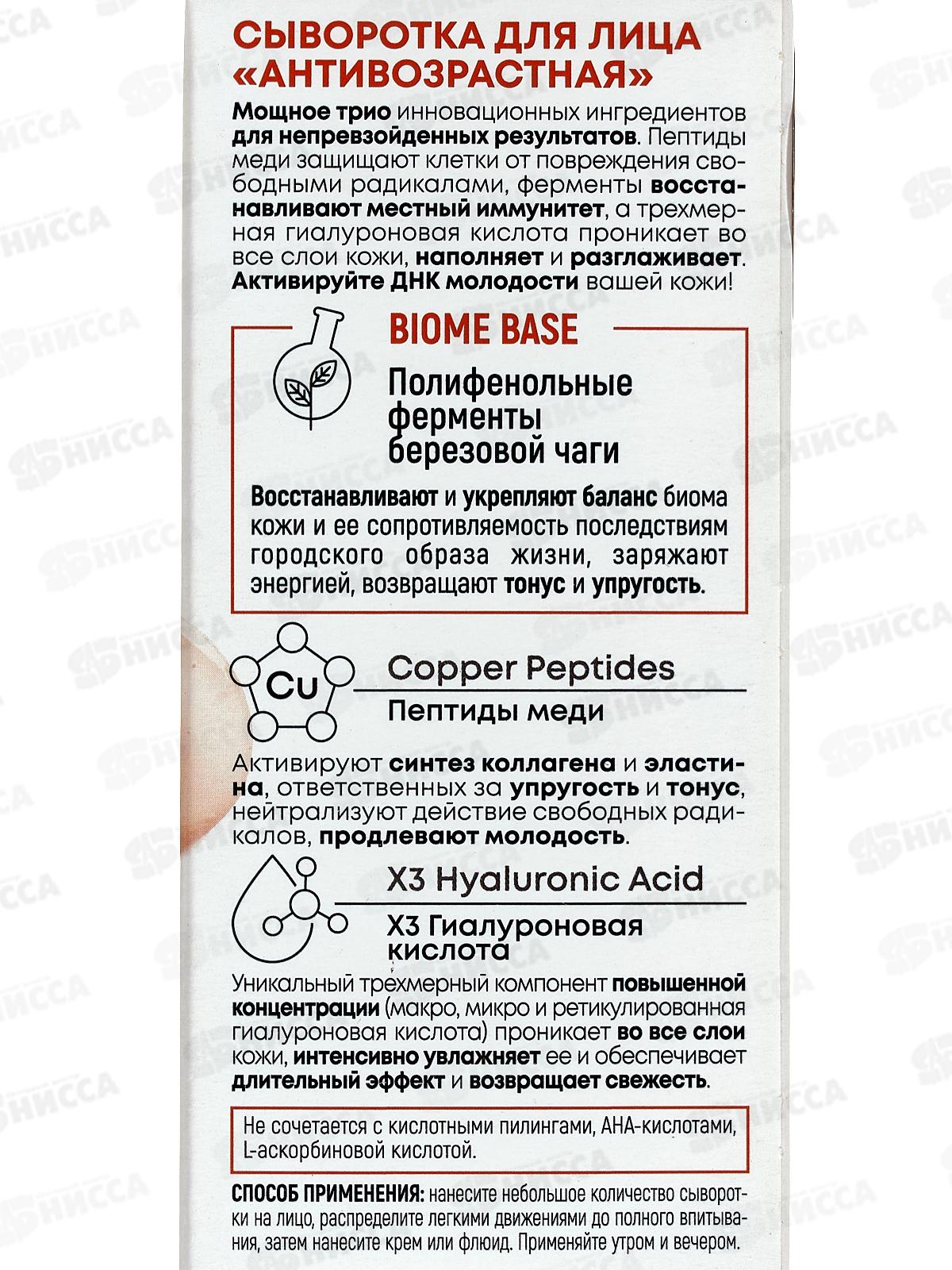 Активные компоненты: пептиды меди, гиалуроновая кислота, ферменты березовой чаги