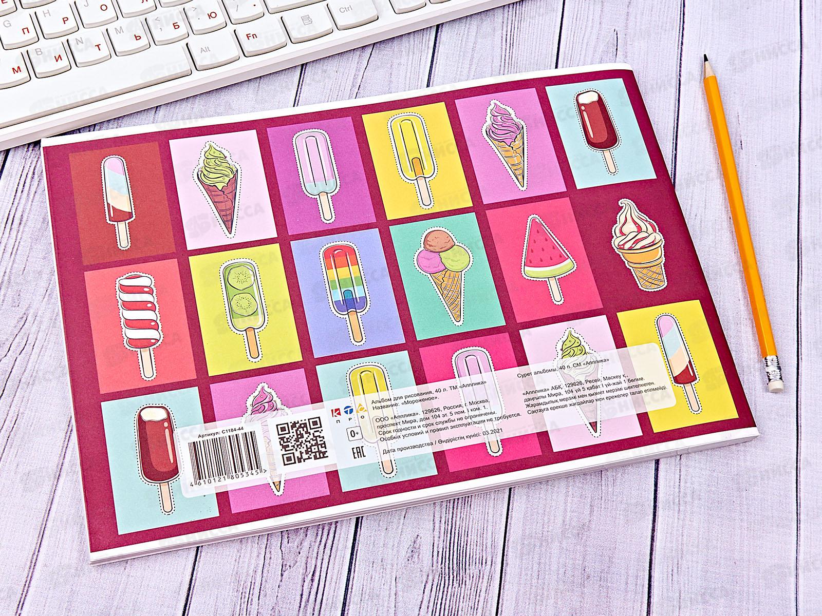 Альбом для рисования 40листов Апплика, Мороженое, С1184-44*30