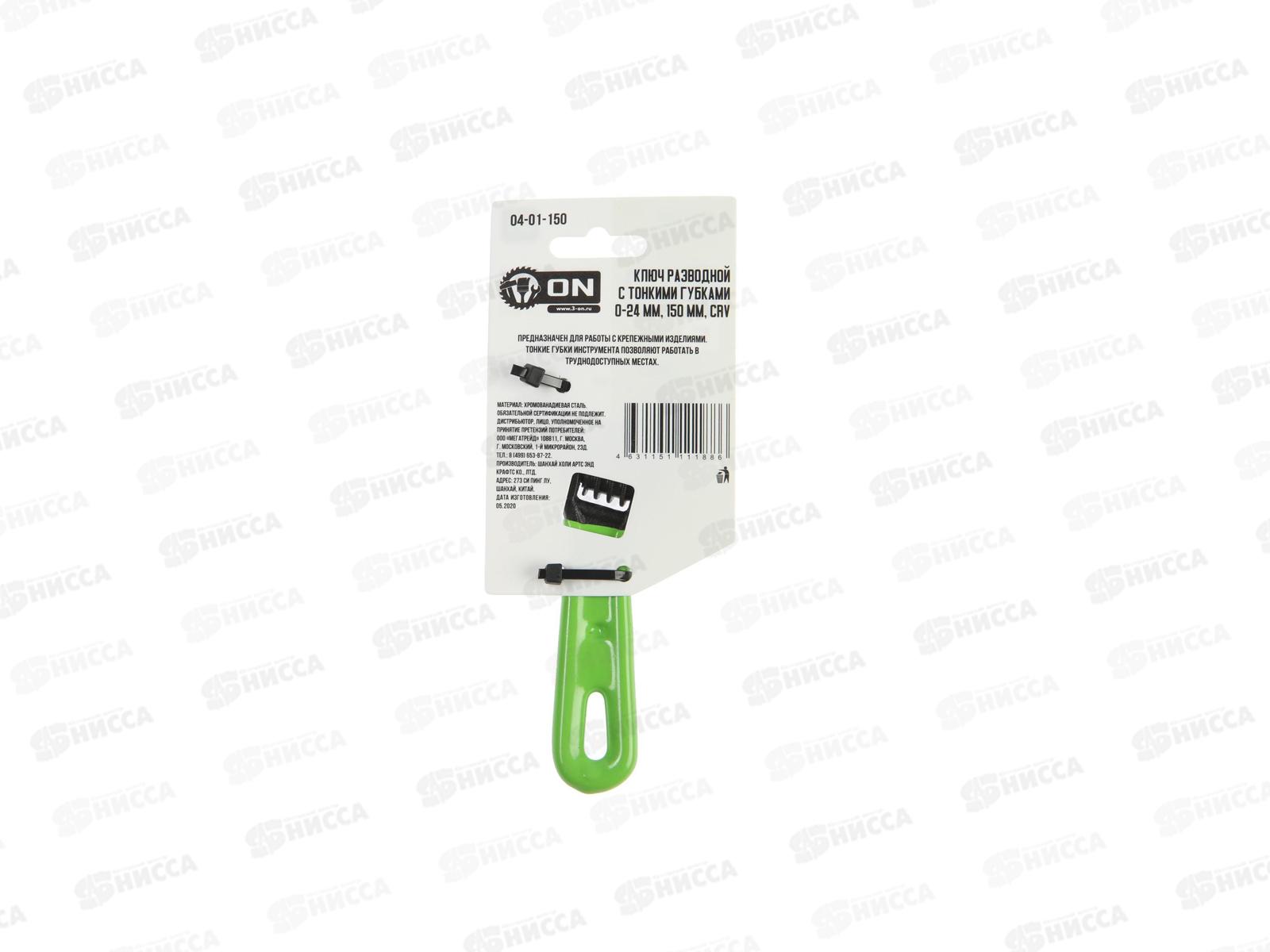 Ключ разводной c тонкими губками 0-24 мм, укороченная рукоятка, 120мм, CrV, ON 04-01-15