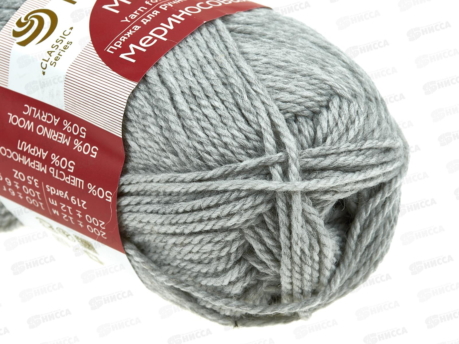 Пряжа Мериносовая 386 светло-серый меланж 100г шерсть50% акр50%