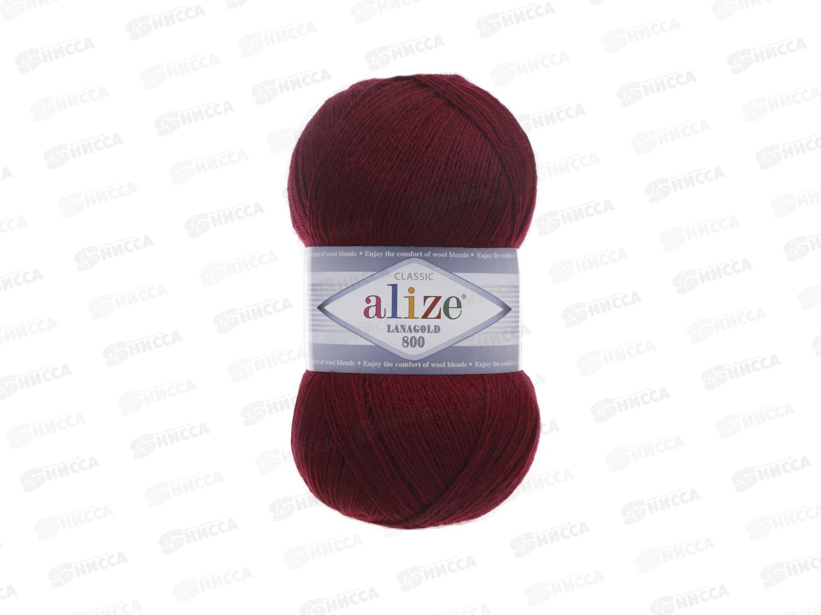 Пряжа Ализе Lana Gold 800 49шерсть+51акрил 100г 800м 57 Бордовый