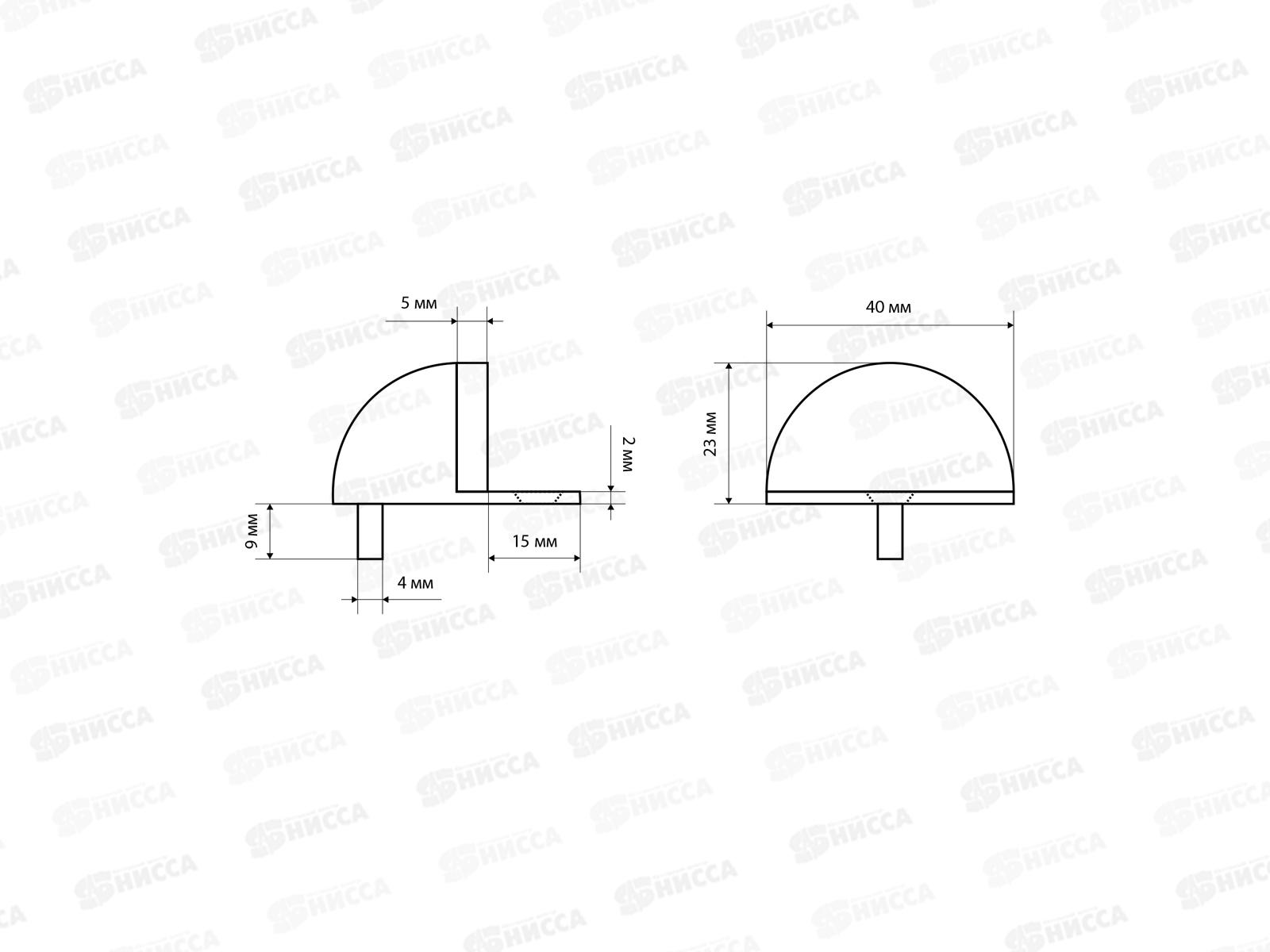 Ограничитель/упор дверной напольный. Материал - сплав ЦАМ, гальваническое покрытие, материал накладки - ПВХ. Имеет форму полусферы. Диаметр основания - 40мм. Крепеж в комплекте.