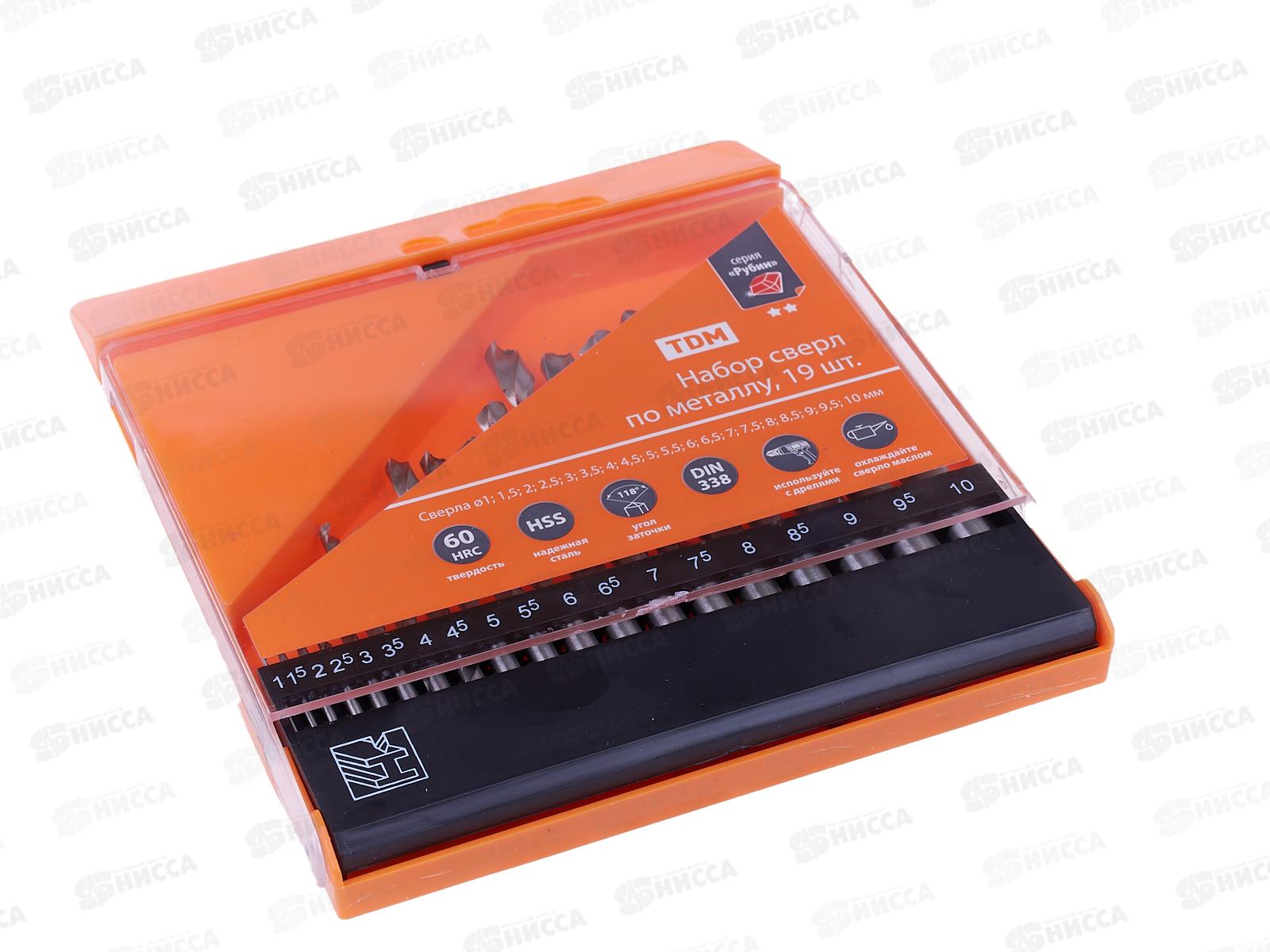 Набор сверл по металлу, 19шт (1-10мм шаг 0.5мм), полир., HSS, 0102