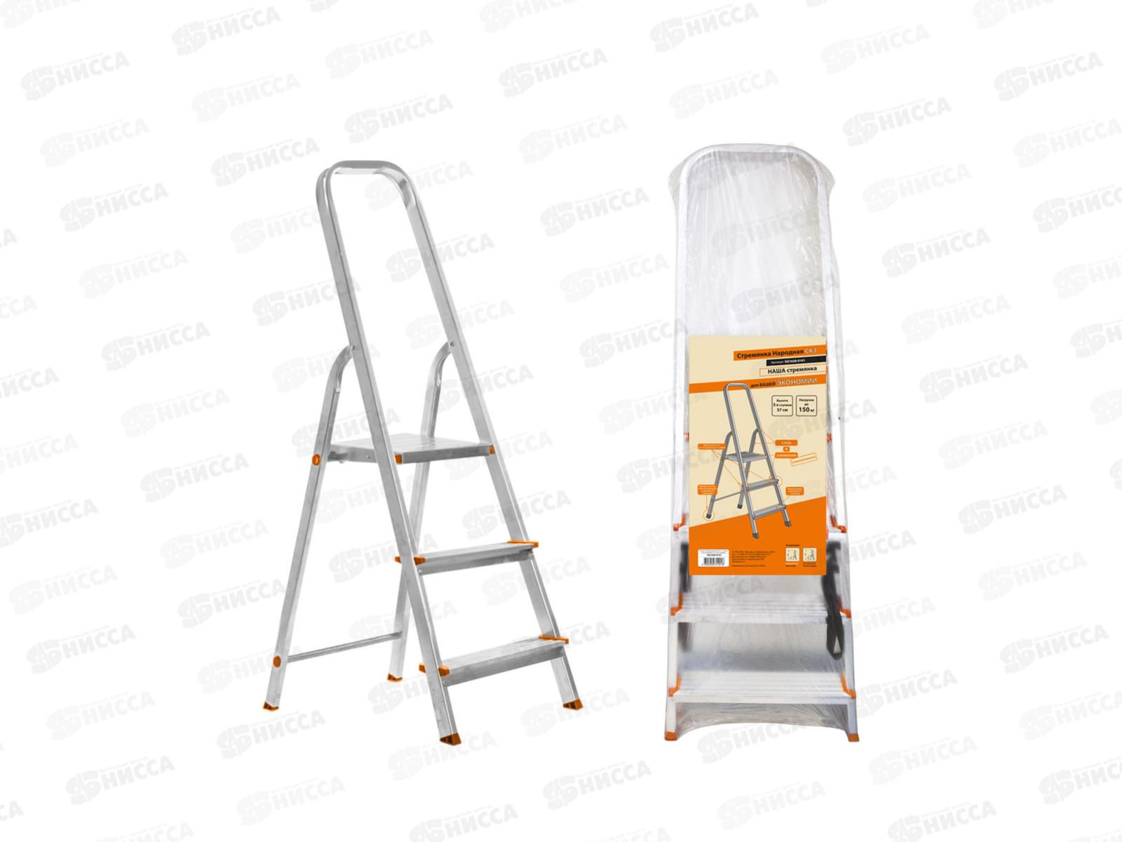 Комбинированная стремянка TDM СК3 Народная 3 ступени SQ1028-0101, используется для проведения различных внутренних и наружных работ на высоте. Ступени стремянки выполнены из алюминия, что позволяет снизить её вес. Рифление ступеней предотвращает проскальзывание стопы и обеспечивает безопасный подъем и спуск. Пластиковые накладки на ножках препятствуют скольжению стремянки по поверхности, что гарантирует стабильность и безопасность.