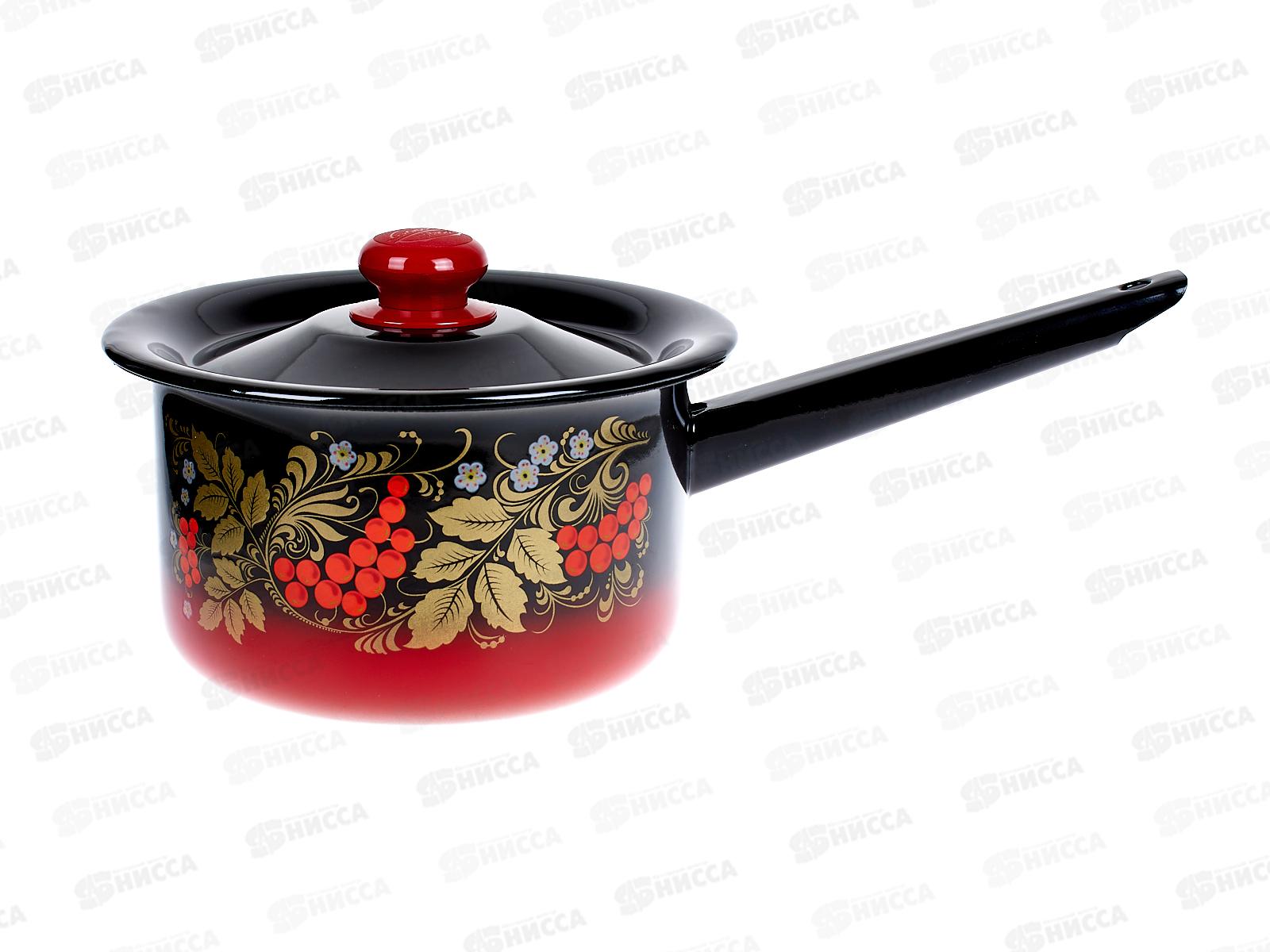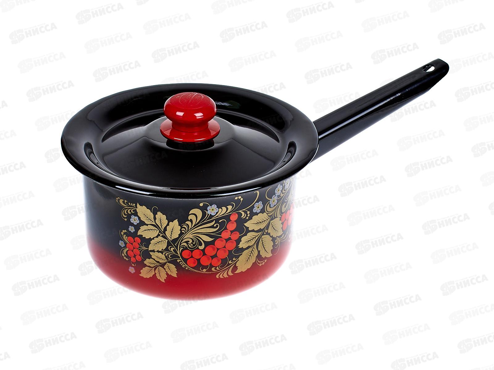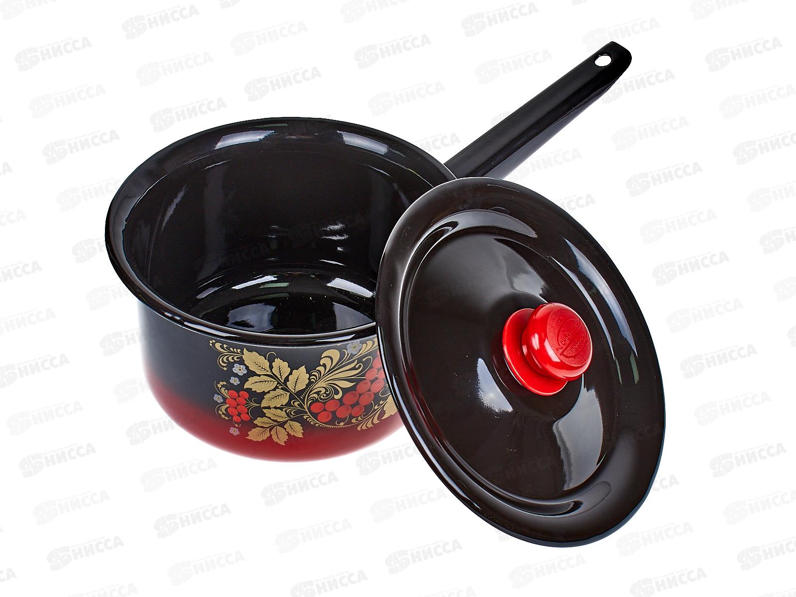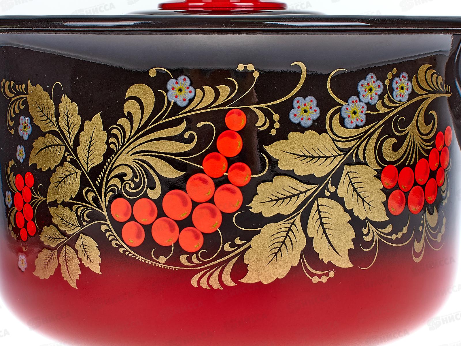 Ковш 2 л с крышкой декорированный красно-чёрный, пластмассовая кнопка С2111.38