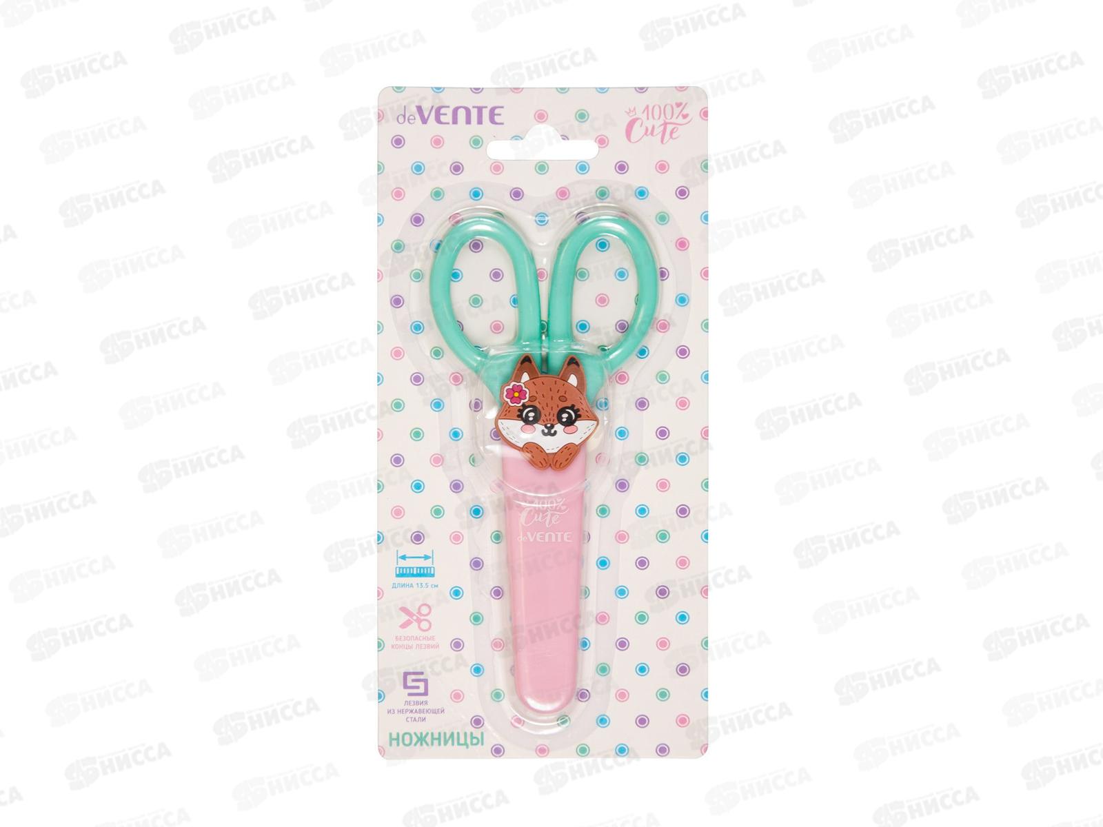 Ножницы детские "deVENTE. 100% Cute. Fox" 13,5 см, пластиковые кольца, защитный футляр с каучуковым декоративным элементом. Незаменимый инструмент в процессе творческой работы, предназначен для резки бумаги и картона. Ножницы для самых маленьких.