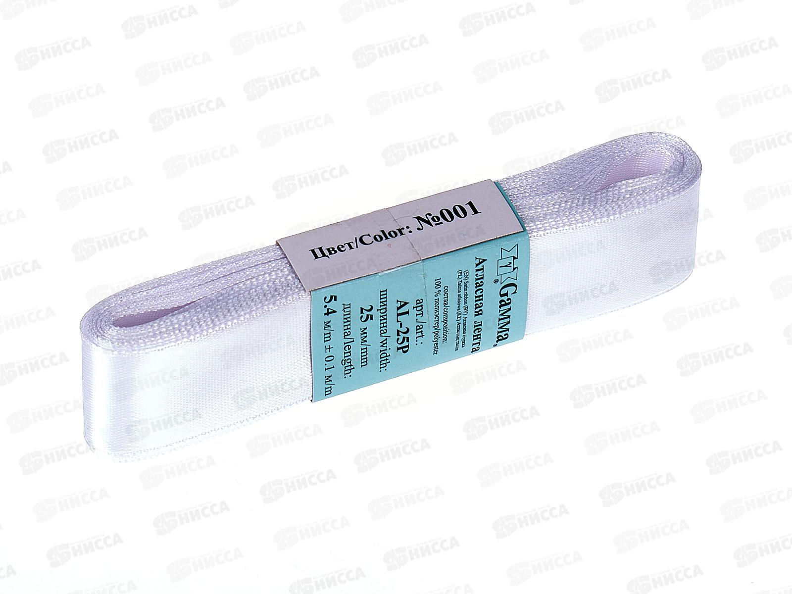 Лента атласная "Gamma" 25мм (1") №001 белый, 5,4м AL-25P фасовка