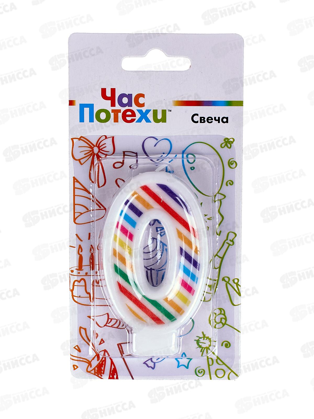 Белая свеча от торговой марки Час потехи "Полосы разноцветные", в форме цифры "0". Отличное решение для декорирования торта, десерта ко дню рождения или юбилею. Высота свечи - цифры 7 см.