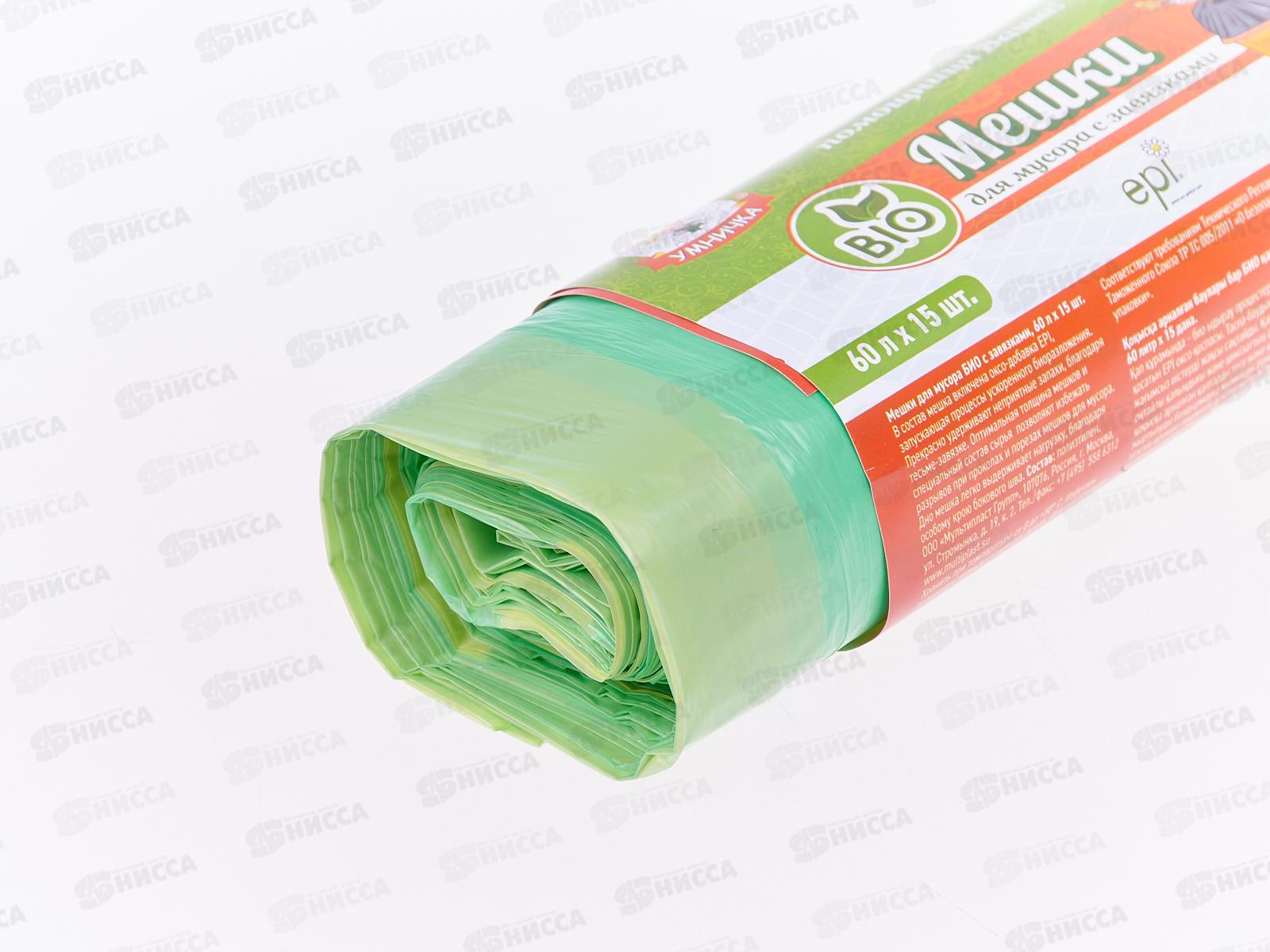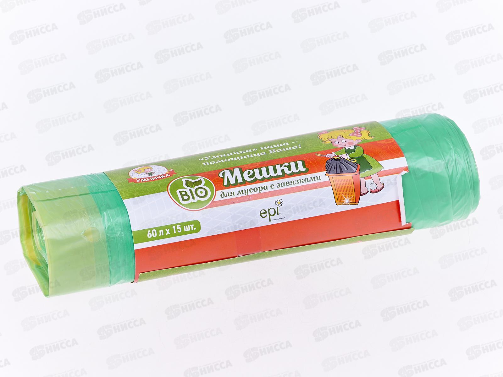 Мешки для мусора 60л 15шт "Умничка" БИО с зав 14мкм *25