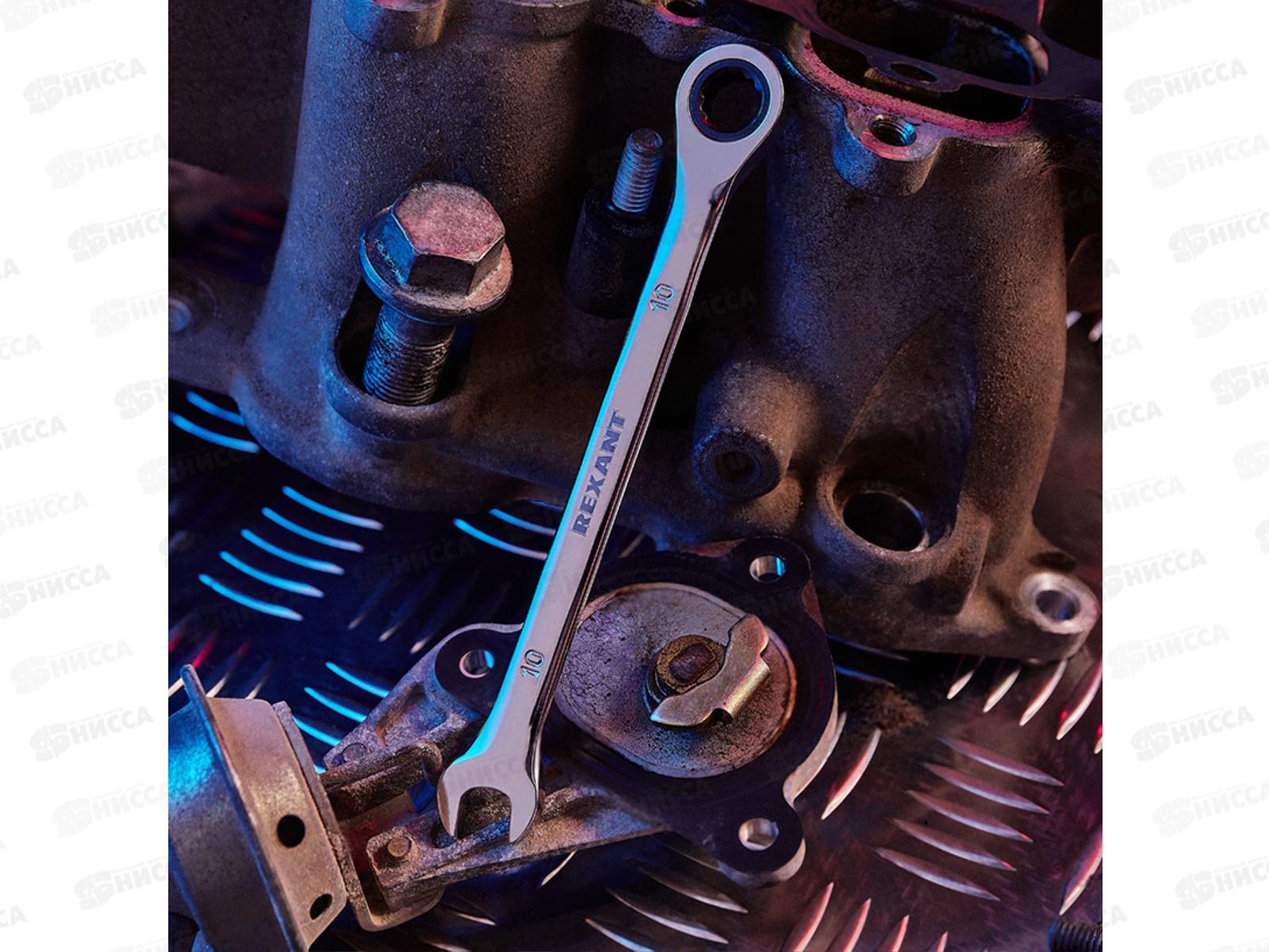 Ключ комбинированный трещоточный 10мм CrV, Rexant, зеркальный хром 12-5805-1