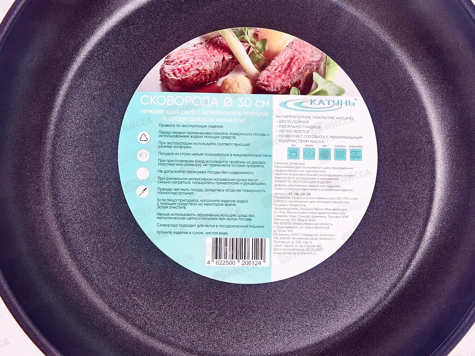 Сковорода 30см без крышки (общепит) корпус 06,мм индукционное дно КТ-ОБ-СA-30
